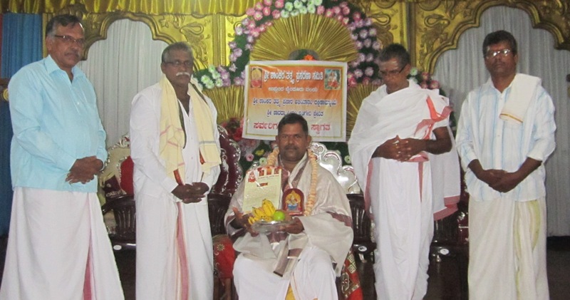 ಬೈಂದೂರು: ಬೈಂದೂರು ವತ್ತಿನಕಟ್ಟೆ ಮಹಾಸತಿ ಅಮ್ಮನವರ ದೇವಸ್ಥಾನ ಅನುವಂಶಿಕ ಅರ್ಚಕ- ಮೊಕ್ತೇಸರ ಬಿ. ಕೃಷ್ಠಮೂರ್ತಿ ನಾವಡರಿಗೆ ನಾಗೂರು ಒಡೆಯರ ಮಠ ಕಲಾಮಂದಿರದಲ್ಲಿ ನಡೆದ ಶ್ರೀ ಶಂಕರ ಜಯಂತಿ -ತತ್ವಜ್ಙಾನಿಗಳ ದಿನಾಚರಣೆ ಸಮಾಂಭದಲ್ಲಿ ಶೃಂಗೇರಿ ದಕ್ಷಿಣಾಮ್ನಾಯ ಪೀಠದ ಶ್ರೀ ಶಂಕರ ತತ್ತ ಪ್ರಸರಣಾ ಸಮಿತಿಯ ಪರವಾಗಿ ವಿದ್ವತ್ ಸನ್ಮಾನ ಪತ್ರ ನೀಡಿ ಗೌರವಿಸಲಾಯಿತು.