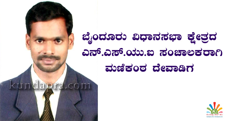 ಬೈಂದೂರು ವಿಧಾನಸಭಾ ಕ್ಷೇತ್ರದ ಎನ್.ಎಸ್.ಯು.ಐ ಸಂಚಾಲಕರಾಗಿ ಮಣಿಕಂಠ ದೇವಾಡಿಗ
