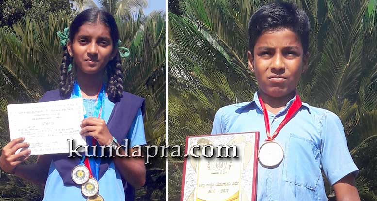 ಬೈಂದೂರು: ೨೦೧೬-೧೭ನೇ ಸಾಲಿನಲ್ಲಿ ಉಡುಪಿ ಜಿಲ್ಲಾ ಮಟ್ಟದ ಕ್ರೀಡಾಕೂಟದಲ್ಲಿ ೧೪ರ ವಯೋಮಾನದ ಬಾಲಕಿಯರ ಎತ್ತರ ಜಿಗಿತ/ಹರ್ಡಲ್ಸ್ ೨೦೦ಮೀ ಓಟದ ಸ್ಪರ್ಧೆಗಳಲ್ಲಿ ಅಕ್ಷತಾ ಉತ್ತಮ ಸಾಧನೆಗೈದು ಬಾಗಲಕೋಟೆ ಜಿಲ್ಲೆಯಲ್ಲಿ ನಡೆಯುವ ರಾಜ್ಯಮಟ್ಟದ ಕ್ರೀಡಾಕೂಟಕ್ಕೆ ಆಯ್ಕೆ ಆಗಿರುತ್ತಾಳೆ. ಕರಾಟೆ ಸ್ಪರ್ಧೆಯ ೨೯ ರಿಂದ ೩೫ ಕೆ.ಜಿ ವಿಭಾಗದಲ್ಲಿ ಸುಬ್ರಹ್ಮಣ್ಯ ಚಿನ್ನದ ಪದಕ ಪಡೆದು ಉಡುಪಿ ಜಿಲ್ಲೆಯಲ್ಲಿ ನಡೆಯುವ ರಾಜ್ಯಮಟ್ಟದ ಕರಾಟೆ ಸ್ಪರ್ಧೆಗೆ ಆಯ್ಕೆ ಆಗಿರುತ್ತಾನೆ. ಈ ಇಬ್ಬರು ಕ್ರೀಡಾಪಟುಗಳಿಗೆ ದೈಹಿಕ ಶಿಕ್ಷಣ ಶಿಕ್ಷಕರಾದ ಸತ್ಯನಾರಾಯಣ ಜಿ ಹಾಗೂ ಮಂಜುನಾಥ ಶೆಟ್ಟಿ ತರಬೇತಿ ನೀಡಿರುತ್ತಾರೆ.