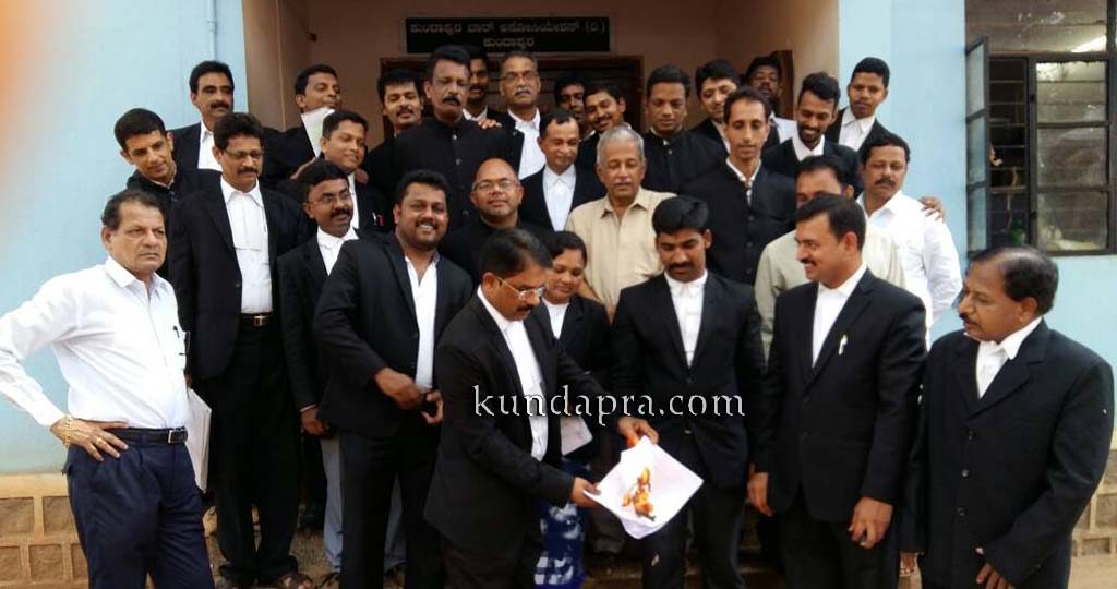 ಭಾರತೀಯ ವಕೀಲರ ಪರಿಷತ್ತು ಹಾಗೂ ಕರ್ನಾಟಕ ರಾಜ್ಯ ವಕೀಲರ ಪರಿಷತ್ತು ಪ್ರತಿಭಟನೆ ನಡೆಸಲು ಕೋರಿಕೊಂಡ ಮೇರೆಗೆ ಕುಂದಾಪುರ ವಕೀಲರ ಸಂಘದ ಸದಸ್ಯರು ವಕೀಲರ ಸಂಘದ ಎದುರುಗಡೆ ಕಾನೂನು ಸೇವಾ ಆಯೋಗದ ಅಧ್ಯಕ್ಷರ ವಿರುದ್ಧ ಘೋಷಣೆಯನ್ನು ಕೂಗಿ ವಿಧೇಯಕವನ್ನು ತಕ್ಷಣ ಕೈಬಿಡುವಂತೆ ಆಗ್ರಹಿಸಿದರು.
