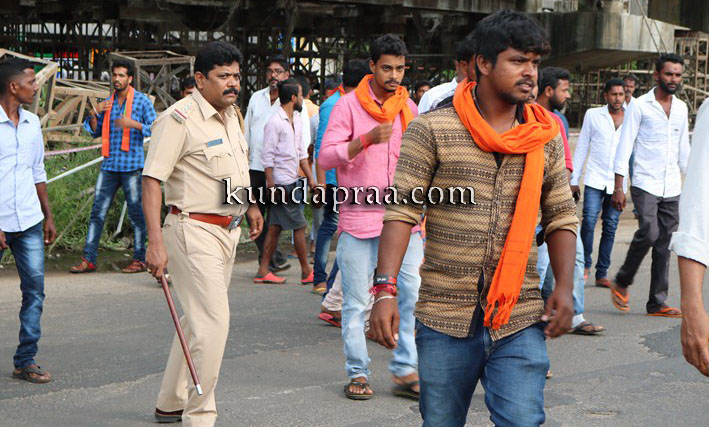 ಕುಂದಾಪುರ ಶಾಸ್ತ್ರಿ ವೃತ್ತದಲ್ಲಿ ಪ್ರತಿಭಟನೆ ಪೊಲೀಸರು ತಡೆಯೊಡ್ಡಿದ ಬಳಿಕ ಕೋಟೇಶ್ವರದಲ್ಲಿ ವಿಶ್ವ ಹಿಂದೂ ಪರಿಷತ್ ನೇತೃತ್ವದಲ್ಲಿ ಖಂಡನಾ ಸಭೆ ಜರುಗಿತು. ಉಡುಪಿ ಪೊಲೀಸ್ ವರಿಷ್ಠಾಧಿಕಾರಿ ಒಂದು ವಾರದಲ್ಲಿ ತನಿಖೆ ನಡೆಸುವ ಭರವಸೆ ನೀಡಿದ್ದು, ಪ್ರತಿಭಟನೆ ಹಿಂದಕ್ಕೆ ಪಡೆಯಲಾಗಿದೆ. ನ್ಯಾಯ ಸಿಗದಿದ್ದರೆ ಮತ್ತೆ ಹೋರಾಟ ನಿಶ್ಚಿತ ಎಂದು ಸಭೆಯಲ್ಲಿ ತೀರ್ಮಾನಿಸಲಾಯಿತು. 500ಕ್ಕೂ ಹೆಚ್ಚಿನ ಕಾರ್ಯಕರ್ತರು ಖಂಡನಾ ಸಭೆಯಲ್ಲಿ ಭಾಗವಹಿಸಿದ್ದರು. ಕುಂದಾಪ್ರ ಡಾಟ್ ಕಾಂ ಸುದ್ದಿ.