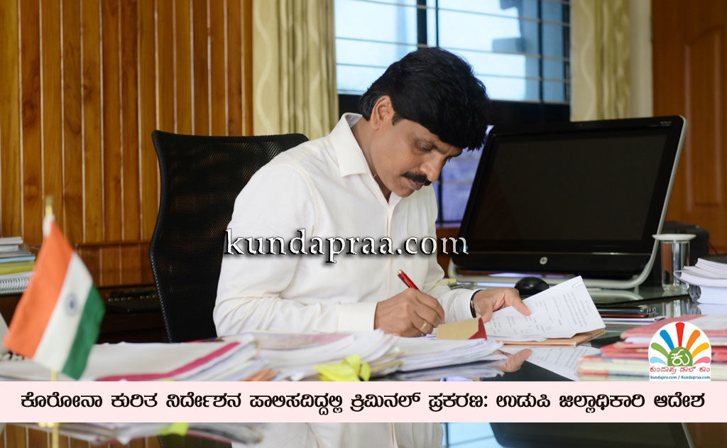 ಆದರೆ ಜಿಲ್ಲೆಯ ನಾಗರೀಕರು ಈ ಆದೇಶಗಳನ್ನು ಉಲ್ಲಂಘನೆ ಮಾಡುತ್ತಿರುವುದು ವರದಿಯಾಗುತ್ತಿದ್ದು, ಇಂತಹ ಪ್ರಕರಣಗಳನ್ನು ನಿಯಂತ್ರ್ರಿಸುವ ಅವಶ್ಯಕತೆಯಿರುವುದರಿಂದ, ಕಾನೂನು ಕ್ರಮ ಕೈಗೊಳ್ಳುವ ಅವಶ್ಯಕತೆಯಿದ್ದು, ಸಿ.ಆರ್.ಪಿ.ಸಿ ಆದೇಶ ಮತ್ತು ಕೋವಿಡ್ ರೋಗವನ್ನು ನಿಯಂತ್ರಿಸಲು ಹೊರಡಿಸಲಾಗಿರುವ ಇತರೇ ನಿರ್ದೇಶನಗಳನ್ನು ಪಾಲಿಸದೇ ಇದ್ದವರ ಮೇಲೆ, ಪೊಲೀಸ್ ಠಾಣೆಗಳಲ್ಲಿ ಕ್ರಿಮಿನಲ್ ಪ್ರಕರಣಗಳನ್ನು ದಾಖಲಿಸುವ ಅಧಿಕಾರವನ್ನು, ಕುಂದಾಪುರ ಉಪವಿಭಾಗಾಧಿಕಾರಿಗಳು, ಉಡುಪಿ, ಕಾಪು, ಬ್ರಹ್ಮಾವರ, ಕುಂದಾಪುರ, ಕಾರ್ಕಳ, ಬೈಂದೂರು, ಹೆಬ್ರಿ ತಹಸೀಲ್ದಾರ್ಗಳಿಗೆ ಪ್ರತ್ಯಾಯೋಜಿಸಿ ಜಿಲ್ಲಾಧಿಕಾರಿ ಜಿ.ಜಗದೀಶ್ ಆದೇಶ ಹೊರಡಿಸಿದ್ದಾರೆ.