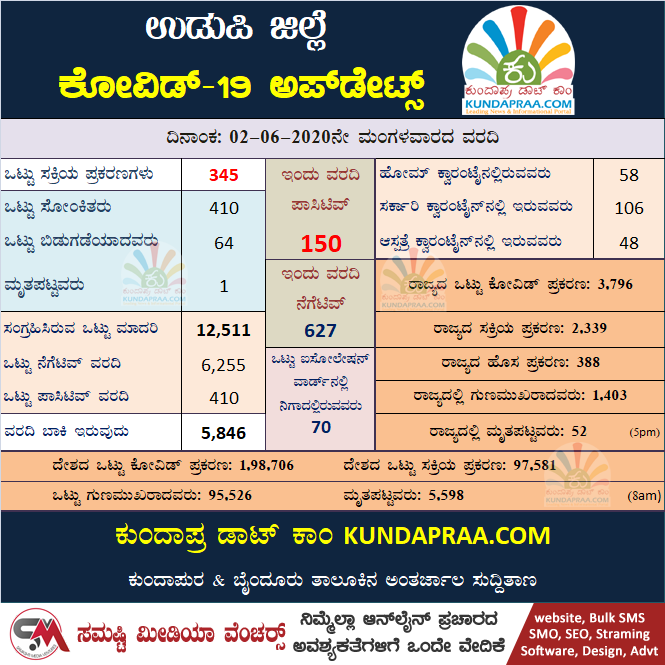 ► ಉಡುಪಿ ಜಿಲ್ಲೆಗಿಂದು ಅಮಂಗಳ: ಒಂದೇ ದಿನ 150 ಕೊರೋನಾ ಪಾಸಿಟಿವ್ ದೃಢ – https://kundapraa.com/?p=38168 .