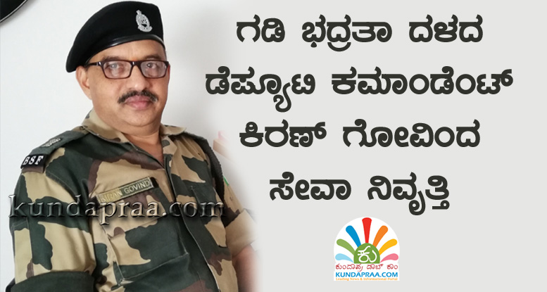 ಕುಂದಾಪುರ: ಗಡಿ ಭದ್ರತಾ ದಳದಲ್ಲಿ ಡೆಪ್ಯೂಟಿ ಕಮಾಂಡಂಟ್ ಆಗಿದ್ದ ಕಿರಣ್ ಗೋವಿಂದ ಕೊಡ್ಕಣಿ ಅವರು ಸೇವೆಯಿಂದ ನಿವೃತ್ತರಾಗಿದ್ದಾರೆ.