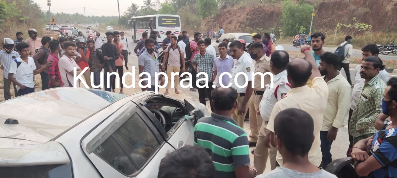 ಕುಂದಾಪುರ: ಭಟ್ಕಳದಿಂದ ಕೆಮ್ಮಣ್ಣುವಿಗೆ ತೆರಳುತ್ತಿದ್ದ ಸಂದರ್ಭ ಹೆಮ್ಮಾಡಿ ರಾಷ್ಟ್ರೀಯ ಹೆದ್ದಾರಿ-66ರಲ್ಲಿ ಕಾರಿನ ಟಯರ್ ಸಿಡಿದು ಮಗುಚಿ ಬಿದ್ದ ಪರಿಣಾಮ ಕಾರಿನಲ್ಲಿದ್ದ ಮಹಿಳೆ ಮೃತಪಟ್ಟಿದ್ದು, ನಾಲ್ವರು ಮಕ್ಕಳು ಸೇರಿ ಐದು ಮಂಂದಿ ಗಾಯಗೊಂಡಿದ್ದಾರೆ.