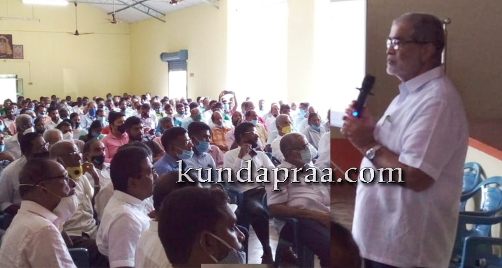 ಕುಂದಾಪುರ: ಜಪ್ತಿ ಗ್ರಾಮದ ಸುಣ್ಣಾರಿಯ ವೆಂಕಟೇಶ್ವರ ಕಲ್ಯಾಣ ಮಂಟಪದಲ್ಲಿ ಉಡುಪಿ ಜಿಲ್ಲಾ ರೈತ ಸಂಘದ ನೇತೃತ್ವದಲ್ಲಿ ವಾರಾಹಿ ಎಡದಂಡೆ ನೀರಾವರಿ ಯೋಜನೆ ಅಚ್ಚುಕಟ್ಟು ಪ್ರದೇಶದ ರೈತರ ಸಭೆ ನಡೆಯಿತು.