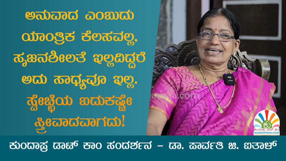 ಸಾಹಿತಿ, ನಿವೃತ್ತ ಉಪನ್ಯಾಸಕಿ ಡಾ. ಪಾರ್ವತಿ ಜಿ. ಐತಾಳ್ ಅವರೊಂದಿಗೆ ಕುಂದಾಪ್ರ ಡಾಟ್ ಕಾಂ ಮಾತುಕತೆ ನ್ಯೂಸ್ ಬ್ಯೂರೋ 4 years ago ಸಾಹಿತಿ, ನಿವೃತ್ತ ಉಪನ್ಯಾಸಕಿ ಡಾ| ಪಾರ್ವತಿ ಜಿ. ಐತಾಳ್ ಅವರೊಂದಿಗೆ ಕುಂದಾಪ್ರ ಡಾಟ್ ಕಾಂ ಮಾತುಕತೆ