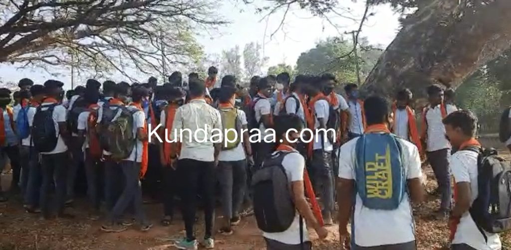 ಬೈಂದೂರಿನ ಸರಕಾರಿ ಪದವಿ ಪೂರ್ವ ಕಾಲೇಜಿನಲ್ಲಿ ವಿದ್ಯಾರ್ಥಿನಿಯರಿಗೆ ಹಿಜಬ್ ಧರಿಸಿ ಕಾಲೇಜು ಪ್ರವೇಶಕ್ಕೆ ಅವಕಾಶ ನೀಡಬಾರದು ಎಂದು ಆಗ್ರಹಿಸಿ ಕಾಲೇಜಿನ ಸುಮಾರು 300ಕ್ಕೂ ಅಧಿಕ ವಿದ್ಯಾರ್ಥಿಗಳು ಕೇಸರಿ ಶಾಲು ಧರಿಸಿ ಬಂದಿದ್ದರು. ಈ ವೇಳೆಯಲ್ಲಿ ಕಾಲೇಜಿನ ಉಪನ್ಯಾಸಕರು ಸಮವಸ್ತ್ರ ಧರಿಸಿದರೆ ಮಾತ್ರವೇ ತರಗತಿಗೆ ಪ್ರವೇಶ ನೀಡುವುದಾಗಿ ತಿಳಿಸಿದ್ದಾರೆ. ಈ ವೇಳೆಯಲ್ಲಿ ಉಪನ್ಯಾಸಕರು ಹಾಗೂ ಸಂಘಟನೆಯ ಕಾರ್ಯಕರ್ತರ ನಡುವೆ ವಾಗ್ವಾದ ನಡೆದಿದೆ. ಅಂತಿಮವಾಗಿ ಹಿಜಾಬ್ ಹಾಗೂ ಕೆಸರಿ ಶಾಲು ಧರಿಸಿದವರನ್ನು ತರಗತಿಗೆ ಪ್ರವೇಶ ನೀಡಲಾಗಿದೆ.