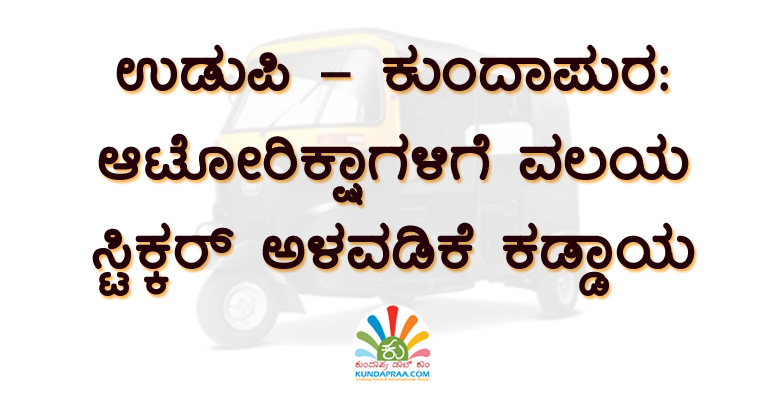ಉಡುಪಿ,ಫೆ.21: ಜಿಲ್ಲೆಯ ಉಡುಪಿ ಮತ್ತು ಕುಂದಾಪುರ ತಾಲೂಕಿನ ಆಟೋರಿಕ್ಷಾ ಚಾಲಕ ಹಾಗೂ ಮಾಲಕರು ಆಟೋರಿಕ್ಷಾಗಳಿಗೆ ಕಡ್ಡಾಯವಾಗಿ ವಲಯ ಸ್ಟಿಕ್ಕರ್ಗಳನ್ನು ಅಳವಡಿಸಿಕೊಳ್ಳುವಂತೆ ಈಗಾಗಲೇ ಸೂಚನೆ ನೀಡಲಾಗಿದೆ.