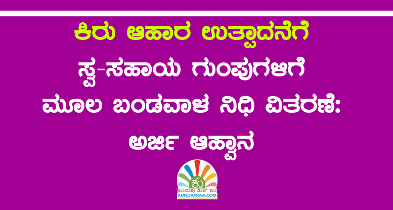 ಗ್ರಾಮ ಪಂಚಾಯತ್ ಮಟ್ಟದ ಸಂಜೀವಿನಿ ಒಕ್ಕೂಟಗಳಲ್ಲಿ ಸದಸ್ಯತ್ವ ಪಡೆದಿರುವ ಮಹಿಳಾ ಸ್ವ-ಸಹಾಯ ಗುಂಪಿನಲ್ಲಿ ಕಿರು ಆಹಾರ ಸಂಸ್ಕರಣಾ ಚಟುವಟಿಕೆಗಳಾದ ಕಿರುಧಾನ್ಯಗಳಿಂದ ತಯಾರಿಸಿದ ಆಹಾರ ಉತ್ಪನ್ನ, ಹಪ್ಪಳ, ಉಪ್ಪಿನ ಕಾಯಿ, ಸಂಡಿಗೆ, ಜೋಳದ ರೊಟ್ಟಿ, ಶಾವಿಗೆ, ಸಾಂಬಾರು ಪದಾರ್ಥ, ಚಟ್ನಿಪುಡಿ, ಬಿಸ್ಕತ್, ವಿವಿಧ ಬಗೆಯ ಚಿಪ್ಸ್, ಚಕ್ಕುಲಿ, ನಿಪ್ಪಟ್ಟು, ಚಾಕಲೇಟ್, ಹೋಳಿಗೆ, ವಿವಿಧ ಬಗೆಯ ಮಾಲ್ಟ್, ತೆಂಗಿನಕಾಯಿ ಉತ್ಪನ್ನಗಳು, ವಿವಿಧ ಬಗೆಯ ಸಿಹಿ ತಿಂಡಿ ತಯಾರಿಕೆ, ಹಿಟ್ಟಿನ ತುರಿ, ಖಾದ್ಯ ತೈಲ, ಹಾಲಿನ ಉತ್ಪನ್ನ, ಬೆಲ್ಲ, ಸಕ್ಕರೆ, ಕಾಫಿ ಪುಡಿ, ಟೀ ಪುಡಿ ಇತ್ಯಾದಿಗಳನ್ನು ಕೈಗೊಂಡಿರುವ ವೈಯಕ್ತಿಕ ಮತ್ತು ಗುಂಪುಗಳ ಅರ್ಹ ಫಲಾನುಭವಿಗಳು ಜೂನ್ 15 ರ ಒಳಗೆ ಅರ್ಜಿ ಸಲ್ಲಿಸಬಹುದಾಗಿದೆ.