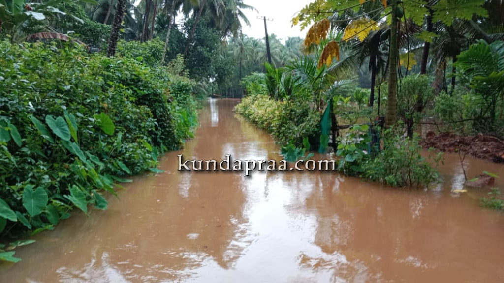 ಕುಂದಾಪುರ,ಜು.07: ಕಳೆದ ನಾಲ್ಕೈದು ದಿನಗಳಿಂದ ನಿರಂತರವಾಗಿ ಮಳೆ ಸುರಿಯುತ್ತಿದ್ದು, ತಾಲೂಕಿನ ಎಲ್ಲಾ ನದಿಗಳು ಉಕ್ಕಿ ಹರಿಯುತ್ತಿದೆ. ಪರಿಣಾಮವಾಗಿ ತಗ್ಗು ಪ್ರದೇಶಗಳು ಜಲಾವೃತಗೊಂಡು ಜನಜೀವನ ಅಸ್ತವ್ಯಸ್ತಗೊಂಡಿದೆ.
