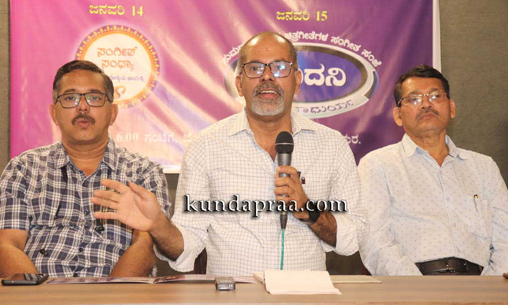 ಅವರು ಕಲಾಕ್ಷೇತ್ರ ಕುಂದಾಪುರ ಕಛೇರಿಯಲ್ಲಿ ಆಯೋಜಿಸಲಾಗಿದ್ದ ಮಾಧ್ಯಮಗೋಷ್ಠಿಯನ್ನು ಉದ್ದೇಶಿಸಿ ಮಾತನಾಡಿ, ಶಿವಮೊಗ್ಗದ ವೇಣುಗೋಪಾಲ, ಬೆಂಗಳೂರಿನ ರಮೇಶ್ಚಂದ್ರ ಮತ್ತು ಶೃತಿ ಭಿಡೆ, ಸಂಗೀತ ಬಾಲಚಂದ್ರ ಉಡುಪಿ, ರವೀಂದ್ರ ಪ್ರಭು ಮೂಲ್ಕಿ, ವೈ ಎನ್. ರವೀಂದ್ರ ಮಂಗಳೂರು, ಅಶೋಕ್ ಸಾರಂಗ್ ಕುಂದಾಪುರ ಹಾಗೂ ಯುವ ಪ್ರತಿಭೆ ಪ್ರಾಪ್ತಿ ಹೆಗ್ಡೆ, ಧಾರಿಣಿ ಕುಂದಾಪುರ ಮತ್ತು ಕಮಲ್ ಕುಂದಾಪುರ ಗಾಯಕ ಗಾಯಕಿಯರು ಭಾಗವಹಿಸಲಿದ್ದು, ಗಿಟಾರ್ ಮಾಂತ್ರಿಕ ಮಂಗಳೂರಿನ ರಾಜಗೋಪಾಲ್ ಮತ್ತು ಕೀಬೋರ್ಡ್ ಮಾಂತ್ರಿಕ ದೀಪಕ್ ಶಿವಮೊಗ್ಗ ಮತ್ತು ಇತರೇ ಪರಿಪಕ್ವ ಕಲಾವಿದರುಗಳನ್ನೊಳಗೊಂಡ ತಂಡದಲ್ಲಿ ಅಂತಾರಾಷ್ಟ್ರೀಯ ಮಟ್ಟದ ಖ್ಯಾತ ಸಂಗೀತ ನಿರ್ದೇಶಕ ಎ.ಆರ್. ರೆಹಮಾನ್ ಅವರೊಂದಿಗೆ ಪಳಗಿದ 5 ಮಂದಿ ವೈಯಲಿನ್ ವಾದಕರು ಇನಿದನಿಗೆ ಸಾಥ್ ನೀಡಲಿದ್ದಾರೆ. ಕಾರ್ಯಕ್ರಮದಲ್ಲಿ ಒಟ್ಟು 29 ಗೀತೆಗಳನ್ನು ಹಾಡಲಾಗುತ್ತಿದೆ. ಗೀತೆಗಳ ಆಯ್ಕೆಯನ್ನು ಕಲಾಕ್ಷೇತ್ರವೇ ಮಾಡಿದ್ದು, ಒಂದು ದಿನದ ಮೊದಲೇ ಹಾಡಿಗೆ ಸಿದ್ಧತೆ ನಡೆಸಲಾಗುತ್ತದೆ ಎಂದರು.