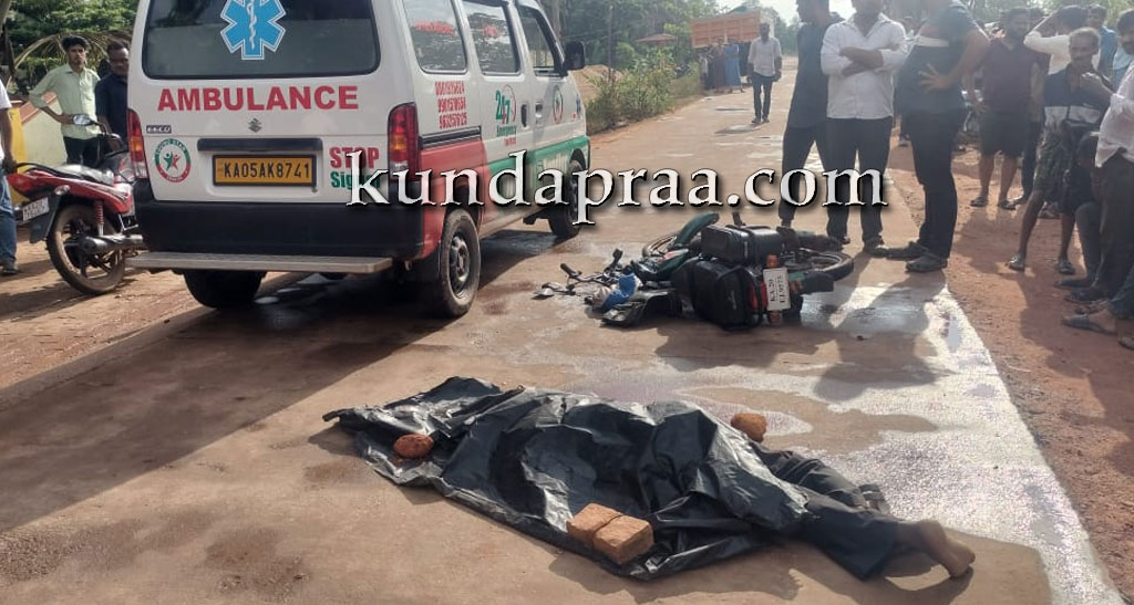 ಕಂಡ್ಲೂರು ಯಿಂದ ಬಸ್ರೂರು ಕಡೆಗೆ ಅತೀ ವೇಗ ಹಾಗೂ ಅಜಾಗರೂಕತೆಯಿಂದ ಚಲಾಯಿಸಿಕೊಂಡು ಬಂದ ಟಿಪ್ಪರ್ ಲಾರಿ ಬಸ್ರೂರುಯಿಂದ ಬಳ್ಕೂರು ಕಡೆಗೆ ಹೋಗುತ್ತಿದ್ದ ಟಿವಿಎಸ್ ಮೋಟರ್ ಸೈಕಲ್ಗೆ ನೇರ ಡಿಕ್ಕಿ ಹೊಡೆದಿದ್ದು, ವ್ಯಕ್ತಿ ಸ್ಥಳದಲ್ಲೇ ಮೃತಪಟ್ಟಿದ್ದಾರೆ.