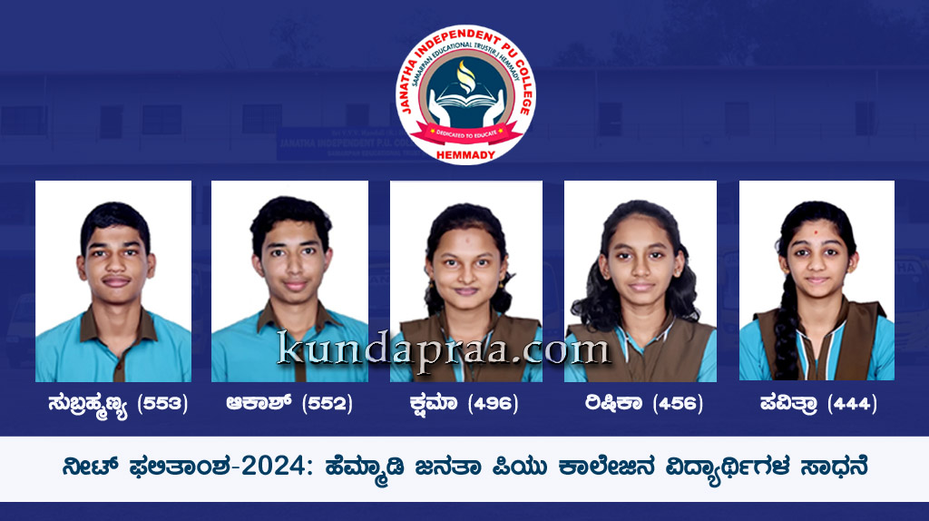 ಇದನ್ನೂ ಓದಿ ► ಕೆಸಿಇಟಿ-2024 ಫಲಿತಾಂಶ: ಹೆಮ್ಮಾಡಿ ಜನತಾ ಕಾಲೇಜು ವಿದಾರ್ಥಿಗಳಿಂದ ಉತ್ತಮ ಸಾಧನೆ – https://kundapraa.com/?p=72730 .