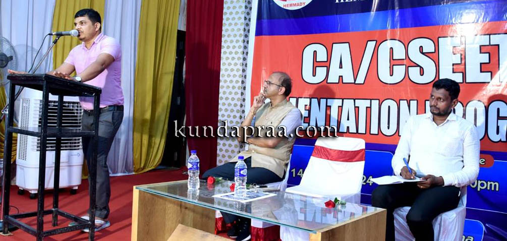 ಸಂಪನ್ಮೂಲ ವ್ಯಕ್ತಿಯಾಗಿದ್ದ ತ್ರಿಷಾ ಸಮೂಹ ಶಿಕ್ಷಣ ಸಂಸ್ಥೆಯ ಸಂಸ್ಥಾಪಕರು, ಸಂಪನ್ಮೂಲ ವ್ಯಕ್ತಿಗಳಾದ ಸಿ.ಎ ಗೋಪಾಲಕೃಷ್ಣ ಭಟ್ ಅವರು ಮಾತನಾಡಿ ವಿದ್ಯಾರ್ಥಿಗಳಿಗೆ ಕಲಿಯುವ ಆಸಕ್ತಿ ಇರಬೇಕು, ಜ್ಞಾನದ ಹಸಿವು ಇದ್ದಾಗ ಮಾತ್ರ ಜೀವನದಲ್ಲಿ ಸಾಧಿಸಲು ಸಾಧ್ಯ ಹಾಗೂ ಶಿಕ್ಷಣದ ಜೊತೆಗೆ ಆತ್ಮಗೌರವವನ್ನು ಬೆಳೆಸಿಕೊಳ್ಳವುದು ಮುಖ್ಯ ಎನ್ನುತ್ತಾ ಸಿ.ಎ, ಸಿ.ಎಸ್ ಸ್ಪರ್ಧಾತ್ಮಕ ಪರೀಕ್ಷೆಗಳ ಕುರಿತಾಗಿ ಸಮಗ್ರವಾಗಿ ಮಾಹಿತಿ ನೀಡಿದರು.