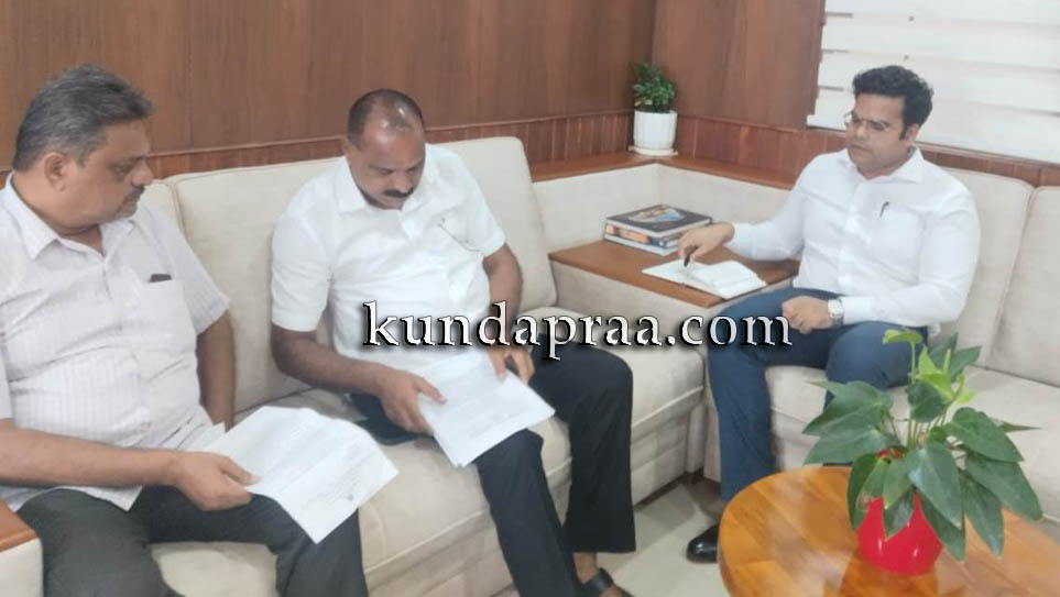 ಕುಂದಾಪುರ: ಗ್ರಾಮ ಪಂಚಾಯಿತಿಗಳಲ್ಲಿನ ಜಲ್ ಜೀವನ್ ಮಿಷನ್ ಕುಡಿಯುವ ನೀರು ಹಾಗೂ ತ್ಯಾಜ್ಯ ವಿಲೇವಾರಿ, ಮೊಬೈಲ್ ಟವರ್ ಲೈಸೆನ್ಸ್ ನೀಡುವ ಬಗ್ಗೆ ಹಾಗೂ ಸಾರ್ವಜನಿಕರಿಗೆ ಕ್ಲಪ್ತ ಸಮಯದಲ್ಲಿ ಸೇವೆಯನ್ನು ಒದಗಿಸಿ ಕ್ರಮ ಕೈಗೊಳ್ಳುವ ಬಗ್ಗೆ ಕುಂದಾಪುರದ ವಿಧಾನಸಭಾ ಕ್ಷೇತ್ರದ ಶಾಸಕರಾದ ಎ.ಕಿರಣ್ ಕುಮಾರ್ ಕೊಡ್ಗಿ ಅವರು ಜಿಲ್ಲಾ ಪಂಚಾಯತ್ ಮುಖ್ಯ ಕಾರ್ಯ ನಿರ್ವಹಣಾಧಿಕಾರಿ ಪ್ರತೀಕ್ ಬಾಯಲ್ ಅವರನ್ನು ಭೇಟಿಯಾಗಿ ಚರ್ಚಿಸಿದರು.
