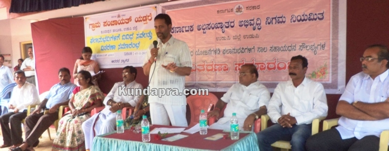 ಯಡ್ತರೆ ಗ್ರಾಪಂ ಆವರಣದಲ್ಲಿ ಕರ್ನಾಟಕ ಅಲ್ಪಸಂಖ್ಯಾತರ ಅಭಿವೃದ್ದಿ ನಿಗಮದ ಶ್ರಮಶಕ್ತಿ ಯೋಜನೆಯಡಿ ಬೈಂದೂರು ವಿಧಾನಸಭಾ ಕ್ಷೇತ್ರದ ವಿವಿಧ ಯೋಜನೆಯಡಿ ರೂ. 101.42ಲಕ್ಷ ಸಾಲ, ಸಹಾಯಧನ ಸೌಲಭ್ಯದ ಚೆಕ್ ವಿತರಿಸಿ ಮಾತನಾಡಿದರು.