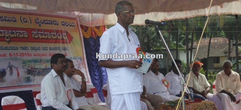 ಅವರು ನಾವುಂದ ವೆಂಕಟರಮಣ ಗಾಣಿಗರ ಕಂಬಳಗದ್ದೆ ವಠಾರದಲ್ಲಿ ಬೈಂದೂರು ವಲಯ ಕಂಬಳ ಸಮಿತಿಯನ್ನು ಉದ್ಘಾಟಿಸಿ ಮಾತನಾಡಿದರು. ಬೈಂದೂರು ವಲಯ ಕಂಬಳ ಸಮಿತಿ ಅಧ್ಯಕ್ಷ ವೆಂಕಟ ಪೂಜಾರಿ ಕಾರ್ಯಕ್ರಮದ ಅಧ್ಯಕ್ಷತೆ ವಹಿಸಿದ್ದರು. (ಕುಂದಾಪ್ರ ಡಾಟ್ ಕಾಂ ಸುದ್ದಿ) ಸಮಾರಂಭದಲ್ಲಿ ಕಂಬಳ ಸಮಿತಿಯ ಗೌರವಾಧ್ಯಕ್ಷ ಎಸ್. ಪ್ರಕಾಶ್ಚಂದ್ರ ಶೆಟ್ಟಿ, ಜಿಲ್ಲಾ ಪಂಚಾಯತ್ ಸದಸ್ಯ ಬಾಬು ಹೆಗ್ಡೆ, ಮರವಂತೆ ಬಡಾಕೆರೆ ವ್ಯ. ಸೇ.ಸ ಸಂಘದ ಅಧ್ಯಕ್ಷ ಎಸ್. ರಾಜು ಪೂಜಾರಿ, ತಾಲೂಕು ಪಂಚಾಯತ್ ಸದಸ್ಯ ಮಹೇಂದ್ರ ಪೂಜಾರಿ, ನಾವುಂದ ಗ್ರಾಮ ಪಂಚಾಯತ್ ಅಧ್ಯಕ್ಷ ನರಸಿಂಹ ದೇವಾಡಿಗ, ಬೈಂದೂರು ರೈತಸಂಘದ ಅಧ್ಯಕ್ಷ ದೀಪಕ್ ಕುಮಾರ್ ಶೆಟ್ಟಿ, ಕಂಬಳ ಸಮಿತಿಯ ಉಪಾಧ್ಯಕ್ಷ ವೆಂಕಟರಮಣ ಗಾಣಿಗ, ರಾಮ ದೇವಾಡಿಗ ಉಪಸ್ಥಿತರಿದ್ದರು. (ಕುಂದಾಪ್ರ ಡಾಟ್ ಕಾಂ ಸುದ್ದಿ)