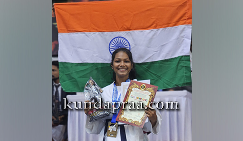 ಕುಂದಾಪುರ: ಎ.ಝಡ್ ಮಾರ್ಷಲ್ ಆರ್ಟ್ಸ್ ಅಕಾಡೆಮಿ ಇಂಡಿಯಾ ಆಯೋಜಿಸಿದ ಇಂಟರ್ನ್ಯಾಷನಲ್ ಓಪನ್ ಕರಾಟೆ ಚಾಂಪಿಯನ್ಶಿಪ್ 2024ರ ಕಟಾ ಮತ್ತು ಕುಮಿಟೆ ಎರಡು ವಿಭಾಗಗಳಲ್ಲಿ ಸಿಂಚನಾ ಕುಂದಾಪುರ ಪ್ರಥಮ ಸ್ಥಾನ ಪಡೆದು ಚಿನ್ನದ ಪದಕ ಗಳಿಸಿದ್ದಾಳೆ.