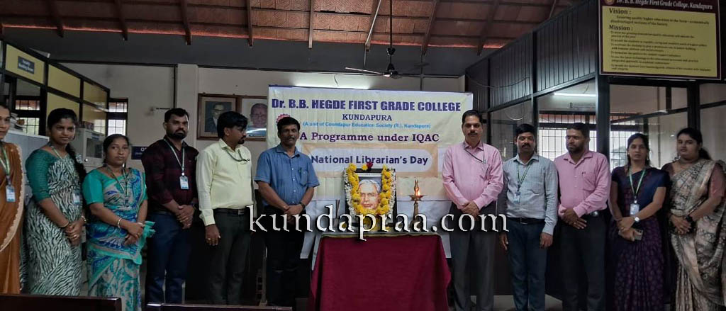 ಕುಂದಾಪುರ: ಇಲ್ಲಿನ ಡಾ| ಬಿ. ಬಿ. ಹೆಗ್ಡೆ ಪ್ರಥಮ ದರ್ಜೆ ಕಾಲೇಜಿನ ಗ್ರಂಥಾಲಯದಲ್ಲಿ ‘ರಾಷ್ಟ್ರೀಯ ಗ್ರಂಥಪಾಲಕರ ದಿನಾಚರಣೆ’ಯನ್ನು ಆಚರಿಸಲಾಯಿತು.