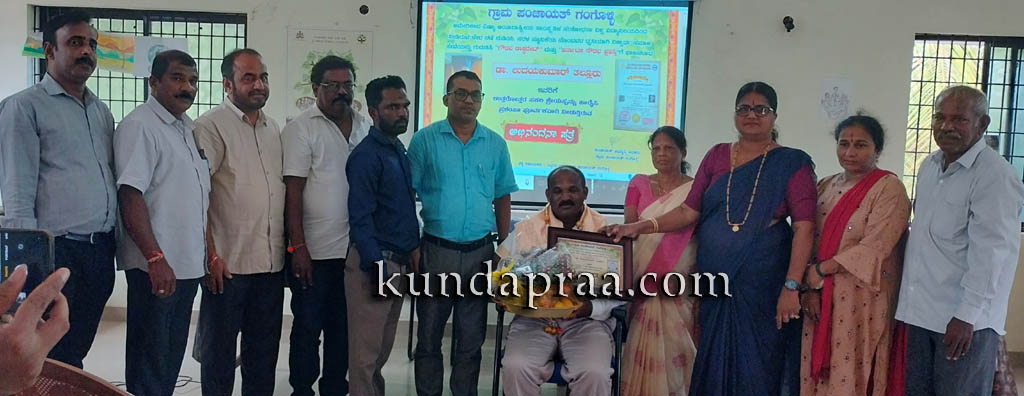 ಅಮೆರಿಕಾದ ಏಷ್ಯಾ ಅಂತರಾಷ್ಟ್ರೀಯ ಸಾಂಸ್ಕೃತಿಕ ಸಂಶೋಧನಾ ವಿಶ್ವ ವಿದ್ಯಾನಿಲಯದಿಂದ ಗೌರವ ಡಾಕ್ಟರೇಟ್ ಪದವಿ ಸ್ವೀಕರಿಸಿ ಉದಯ ಕುಮಾರ್ ತಲ್ಲೂರು ಅವರನ್ನು ಗಂಗೊಳ್ಳಿ ಗ್ರಾಮ ಪಂಚಾಯತ್ ವತಿಯಿಂದ ಗ್ರಾಮ ಪಂಚಾಯತ್ ಸಭಾಭವನದಲ್ಲಿ ಗೌರವಿಸಿ ಅವರು ಮಾತನಾಡಿದರು.