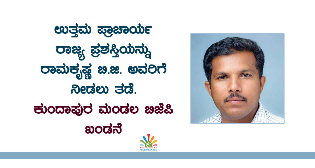 ಕುಂದಾಪುರ: ಶಿಕ್ಷಕರ ದಿನಾಚರಣೆಯ ಸುಸಂದರ್ಭದಲ್ಲಿ ಶಿಕ್ಷಣ ಇಲಾಖೆಯಿಂದ ರಾಜ್ಯ ಮಟ್ಟದ ಉತ್ತಮ ಪ್ರಾಂಶುಪಾಲರ ಪ್ರಶಸ್ತಿಗೆ ಆಯ್ಕೆಯಾದ ಕುಂದಾಪುರದ ಜ್ಯೂನಿಯರ್ ಕಾಲೇಜು ಪ್ರಾಂಶುಪಾಲರಿಗೆ ಪ್ರಶಸ್ತಿ ನೀಡುವ ವಿಷಯದಲ್ಲಿ ತಾತ್ಕಾಲಿಕ ತಡೆ ನೀಡಿರುವ ರಾಜ್ಯ ಸರ್ಕಾರದ ನಡೆಯನ್ನು ಭಾರತೀಯ ಜನತಾ ಪಾರ್ಟಿ ಕುಂದಾಪುರ ಮಂಡಲ ಅಧ್ಯಕ್ಷ ಸುರೇಶ್ ಶೆಟ್ಟಿ ಗೋಪಾಡಿ ಖಂಡಿಸಿದ್ದಾರೆ.