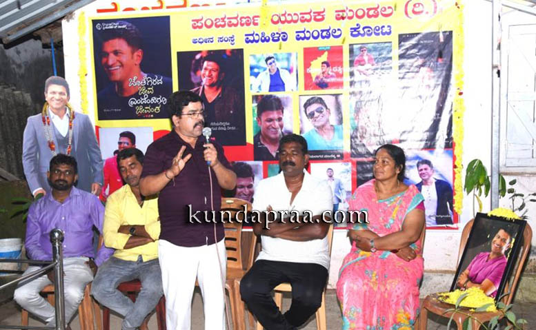 ಕೋಟದ ಪಂಚವರ್ಣ ಕಛೇರಿಯಲ್ಲಿ ಪಂಚವರ್ಣ ಯುವಕ ಮಂಡಲ ಅಧೀನ ಸಂಸ್ಥೆ ಪಂಚವರ್ಣ ಮಹಿಳಾ ಮಂಡಲ ಕೋಟ ಇವರ ನೇತೃತ್ವದಲ್ಲಿ ಸಾಮಾಜಿಕ ಹರಿಕಾರ ಚಿತ್ರನಟ ಪುನೀತ್ ರಾಜ್ಕುಮಾರ್ರವರ ಮೂರನೇ ವರ್ಷದ ಪುಣ್ಯ ಸ್ಮರಣೆ ಕಾರ್ಯಕ್ರಮದಲ್ಲಿ ಮಾತನಾಡಿ, ಸಮಾಜದಲ್ಲಿ ತೆರೆಯ ಮರೆಯಲ್ಲಿ ಸೇವೆಗೈದು ನಮ್ಮೆಲ್ಲರಿಗೂ ಮಾದರಿ ಬದುಕಿನ ಸಂದೇಶ ನೀಡಿದ ರಾಜ್ಕುಮಾರ್ ಜೀವನ ಚರಿತ್ರೆ ಇತಿಹಾಸ ಪುಟದಲ್ಲಿ ಸೇರಿಕೊಂಡಿದೆ ಅಂತಹ ವ್ಯಕ್ತಿಯ ಹೆಸರಿನಲ್ಲಿ ವಿದ್ಯಾನಿಧಿ ಯೋಜನೆ ರೂಪಿಸಿದ ಪಂಚವರ್ಣ ಸಂಸ್ಥೆಯ ಕಾರ್ಯ ನಿಜಕ್ಕೂ ಶ್ಲಾಘನೀಯ, ಅವರ ಅಭಿಮಾನ ಹೊಂದಿದ ಸಂಸ್ಥೆಯ ಸದಸ್ಯ ದಿನೇಶ್ ಆಚಾರ್ ರವರ ಅಭಿಮಾನ ಎಲ್ಲರಿಗೂ ಮಾದರಿಯಾಗಿದೆ ಎಂದರು.