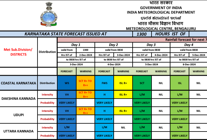 ಉಡುಪಿ,ಡಿ.02: ಬಂಗಾಳಕೊಲ್ಲಿಯಲ್ಲಿ ಉಂಟಾದ ಚಂಡಮಾರುತದಿಂದಾಗಿ ರಾಜ್ಯದ ಕರಾವಳಿಯಲ್ಲಿಯೂ ಮುಂದಿನ 2 ದಿನಗಳ ಕಾಲ ಹೆಚ್ಚಿನ ಮಳೆ ಹಾಗೂ ಗಾಳಿ ಬೀಸುವ ಸಾಧ್ಯತೆ ಇದೆ ಎಂದು ಹವಾಮಾನ ಇಲಾಖೆ ಮುನ್ಸೂಚನೆ ನೀಡಿದೆ. ಡಿ.03ರಂದು ಭಾರಿ ಮಳೆ ಡಿ.04ರಂದು ಸಾಧಾರಣ ಮಳೆಯಾಗುವ ಸಾಧ್ಯತೆ ಇದೆ ಎಂದು ತಿಳಿಸಲಾಗಿದೆ.
