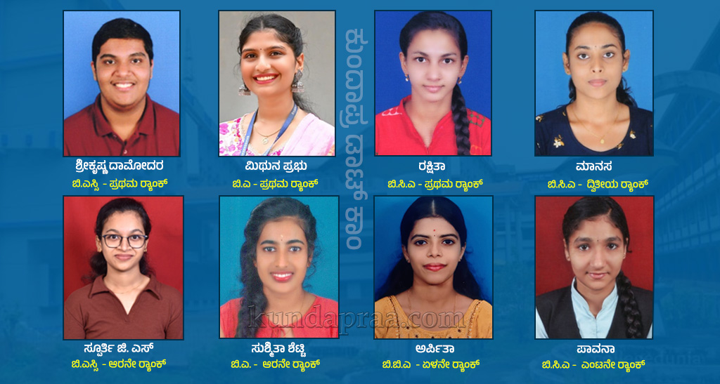 ಕುಂದಾಪುರ: ಮಂಗಳೂರು ವಿಶ್ವವಿದ್ಯಾಲಯವು 2024ರಲ್ಲಿ ನಡೆಸಿದ ಅಂತಿಮ ಪದವಿ ಪರೀಕ್ಷೆಯಲ್ಲಿ ಕುಂದಾಪುರದ ಭಂಡಾರ್ಕಾರ್ಸ್ ಕಾಲೇಜಿನ ಎಂಟು ವಿದ್ಯಾರ್ಥಿಗಳು ರ್ಯಾಂಕ್ ಪಡೆದಿದ್ದಾರೆ.