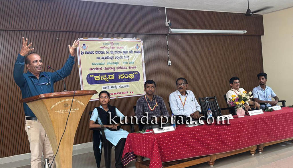 ಕುಂದಾಪುರ: ಭಾಷೆ ಒಂದು ಜನಾಂಗ ಮತ್ತು ಸಂಸ್ಕೃತಿಯ ಅಸ್ಮಿತೆ. ಭಾಷೆಯ ಬಳಕೆಯಿಂದ ಅದರ ಉಳಿವು ಮತ್ತು ಬೆಳವಣಿಗೆ ಸಾಧ್ಯವಾಗುತ್ತದೆ. ವ್ಯಕ್ತಿಗೆ ಅಭಿವ್ಯಕ್ತಿಯಿಂದಲೇ ನೆಲೆ ಮತ್ತು ಬೆಲೆ. ಕಾಲೇಜು ಹಂತದಲ್ಲಿ ಸಿಕ್ಕ ಅವಕಾಶಗಳನ್ನು ಸದ್ಬಳಕೆ ಮಾಡಿಕೊಂಡು ವಿದ್ಯಾರ್ಥಿಗಳು ಸಮರ್ಥ ಸಂವಹನಕಾರರಾದಲ್ಲಿ ಉಜ್ವಲ ಭವಿಷ್ಯವನ್ನು ಹೊಂದಬಹುದೆಂದು ಸುಳ್ಯ ನೆಹರು ಮೆಮೋರಿಯಲ್ ಕಾಲೇಜಿನ ಪ್ರಾದ್ಯಾಪಕ ಸಂಜೀವ ಕುದ್ಪಾಜೆ ಹೇಳಿದರು.