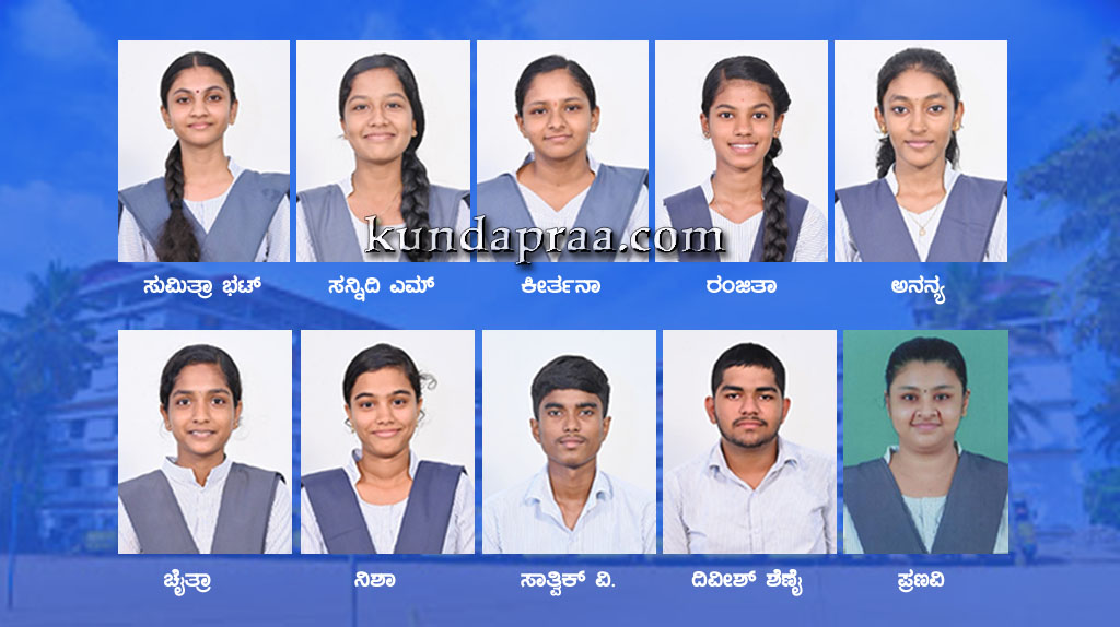 ವಿಜ್ಞಾನ ವಿಭಾಗದಲ್ಲಿ ವಿದ್ಯಾರ್ಥಿನಿ ಸುಮಿತ್ರಾ ಭಟ್ (593 ) ರಾಜ್ಯಕ್ಕೆ 7ನೇ ರ್ಯಾಂಕ್, ಸನ್ನಿಧಿ ಎಮ್ (592) 8ನೇ ರ್ಯಾಂಕ್, ಕೀರ್ತನಾ, ರಂಜಿತಾ (591), 9ನೇ ರ್ಯಾಂಕ್, ಅನನ್ಯ, ಚೈತ್ರಾ, ನಿಶಾ, ಸಾತ್ವಿಕ್( 590) 10ನೇ ರ್ಯಾಂಕ್ ಪಡೆದುಕೊಂಡಿದ್ದಾರೆ.