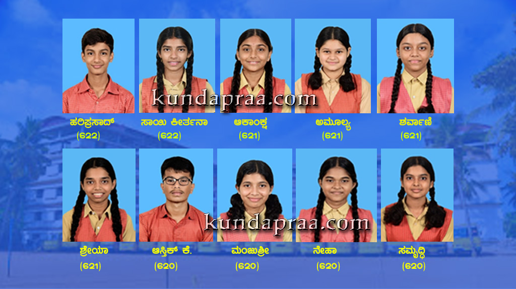 ಹರಿಪ್ರಸಾದ್ ಎಮ್.ಎಸ್., ಸಾಯಿ ಕೀರ್ತನಾ 622 ಅಂಕ ಪಡೆದು ಶಾಲಾ ಮಟ್ಟದಲ್ಲಿ ಪ್ರಥಮ ಸ್ಥಾನ ಹಾಗೂ ರಾಜ್ಯ ಮಟ್ಟದಲ್ಲಿ 4ನೇ ಸ್ಥಾನ ಗಳಿಸಿರುತ್ತಾರೆ. ಆಕಾಂಕ್ಷ ಎಸ್. ಪೈ, ಅಮೂಲ್ಯ ಶೇಟ್, ಶರ್ವಾಣಿ ಉಳವಿ, ಶ್ರೇಯಾ 621 ಅಂಕಗಳಿಸಿ ದ್ವಿತೀಯ ಸ್ಥಾನ ಪಡೆದಿರುತ್ತಾರೆ ಹಾಗೂ ರಾಜ್ಯಮಟ್ಟದಲ್ಲಿ 5ನೇ ಸ್ಥಾನ ಗಳಿಸಿರುತ್ತಾರೆ ಮತ್ತು ಆಸ್ತಿಕ್ ಕೆ., ಮಂಜುಶ್ರೀ ಕೆ.ಪಿ., ನೇಹಾ ಆರ್., ಸಮೃದ್ಧಿ ನಾಯಕ್ ಕ್ರಮವಾಗಿ 620 ಅಂಕಗಳಿಸಿ ತೃತೀಯ ಸ್ಥಾನ ಮತ್ತು ರಾಜ್ಯ ಮಟ್ಟದಲ್ಲಿ ಆರನೇ ಸ್ಥಾನ ಗಳಿಸಿರುತ್ತಾರೆ.