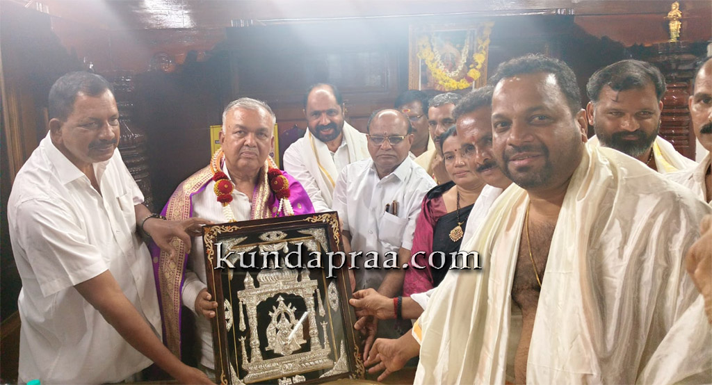 ಈ ಸಂದರ್ಭದಲ್ಲಿ ಕೊಲ್ಲೂರು ಶ್ರೀ ಮೂಕಾಂಬಿಕಾ ದೇವಸ್ಥಾನದ ವ್ಯವಸ್ಥಾಪನ ಸಮಿತಿ ಅಧ್ಯಕ್ಷ ಕೆ. ಬಾಬು ಶೆಟ್ಟಿ ಹಾಗೂ ಕಾರ್ಯನಿರ್ವಹಣಾಧಿಕಾರಿ ಪ್ರಶಾಂತ್ ಕುಮಾರ್ ಶೆಟ್ಟಿ ಅವರ ನೇತೃತ್ವದಲ್ಲಿ ಸಚಿವರನ್ನು ಸನ್ಮಾನಿಸಲಾಯಿತು.