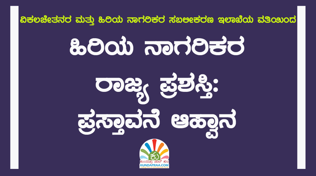 ಉಡುಪಿ: ಪ್ರಸಕ್ತ ಸಾಲಿನಲ್ಲಿ ವಿಕಲಚೇತನರ ಮತ್ತು ಹಿರಿಯ ನಾಗರಿಕರ ಸಬಲೀಕರಣ ಇಲಾಖೆಯ ವತಿಯಿಂದ, ಅಕ್ಟೋಬರ್ 01 ರಂದು ವಿಶ್ವ ಹಿರಿಯ ನಾಗರಿಕರ ದಿನಾಚರಣೆಯನ್ನು ರಾಜ್ಯ ಮಟ್ಟದಲ್ಲಿ ಆಚರಿಸುವ ಸಂದರ್ಭದಲ್ಲಿ ಹಿರಿಯ ನಾಗರಿಕರ ವಿವಿಧ ಕ್ಷೇತ್ರಗಳಾದ ಶಿಕ್ಷಣ, ಸಾಹಿತ್ಯ, ಕಾನೂನು, ಪ್ರತಿಭೆ/ಕ್ರೀಡೆ ಮತ್ತು ಹಿರಿಯ ನಾಗರಿಕರ ಕ್ಷೇತ್ರದಲ್ಲಿ ಸಮಾಜ ಸೇವೆ ಕ್ಷೇತ್ರಗಳಲ್ಲಿ ಗಣನೀಯ ಸೇವೆ ಸಲ್ಲಿಸಿದ ಹಿರಿಯ ನಾಗರಿಕರಿಗೆ 06 ವೈಯಕ್ತಿಕ ಹಾಗೂ ಹಿರಿಯ ನಾಗರಿಕರ ಕ್ಷೇತ್ರದಲ್ಲಿ ಉತ್ತಮವಾಗಿ ಕಾರ್ಯನಿರ್ವಹಿಸುತ್ತಿರುವ 01 ಸಂಸ್ಥೆಗೆ ಪ್ರಶಸ್ತಿ ಸೇರಿ ಒಟ್ಟು 07 ಪ್ರಶಸ್ತಿಗಳನ್ನು ವಿಕಲಚೇತನರ ಹಾಗೂ ಹಿರಿಯ ನಾಗರಿಕರ ಸಬಲೀಕರಣ ಇಲಾಖೆಯಿಂದ ನೀಡಲಾಗುವುದು.