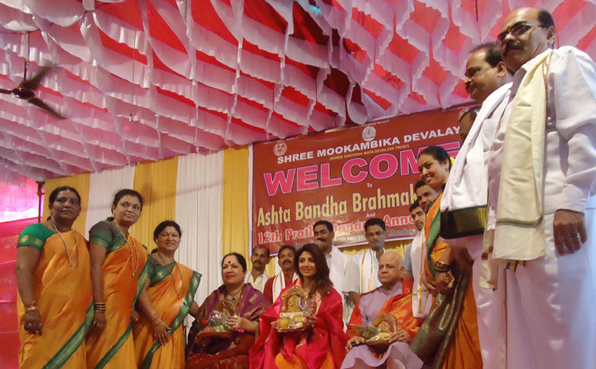 ಇದೇ ಸಂದರ್ಭದಲ್ಲಿ ವಿಶೇಷ ಅತಿಥಿಗಳಾಗಿ ಆಗಮಿಸಿದ ಬಾಲಿವುಡ್ ನಟಿ ಶಿಲ್ಪಾ ಶೆಟ್ಟಿ, ಅವರ ತಾಯಿ ಸುನಂದಾ ಶೆಟ್ಟಿ, ಶಿಲ್ಪಾ ಶೆಟ್ಟಿ ಅವರ ತಂದೆ ಸುರೇಂದ್ರ ಶೆಟ್ಟಿ ಅವರನ್ನು ಮಂದಿರದ ವತಿಯಿಂದ ಶಾಲು ಹೊದಿಸಿ, ಫಲಪುಷ್ಪ, ಸ್ಮರಣಿಕೆಯನ್ನಿತ್ತು ಸಮ್ಮಾನಿಸಲಾಯಿತು. ಸಮಾರಂಭದಲ್ಲಿ ದೇವಾಲಯದ ಅಧ್ಯಕ್ಷ, ಧರ್ಮದರ್ಶಿ ಅಣ್ಣಿ ಸಿ. ಶೆಟ್ಟಿ, ಉಪಾಧ್ಯಕ್ಷರುಗಳಾದ ನಂದಿಕೂರು ಜಗದೀಶ್ ಶೆಟ್ಟಿ, ಕೆ. ಎಂ. ಶೆಟ್ಟಿ, ಗೌರವ ಪ್ರಧಾನ ಕಾರ್ಯದರ್ಶಿ ಸುರೇಶ್ ಎಸ್. ಕೋಟ್ಯಾನ್, ಜತೆ ಕಾರ್ಯದರ್ಶಿ ತಾಳಿಪಾಡಿಗುತ್ತು ಭಾಸ್ಕರ್ ಎಂ. ಶೆಟ್ಟಿ, ಕೋಶಾಧಿಕಾರಿ ಶೇಖರ್ ವಿ. ದೇವಾಡಿಗ, ಜತೆ ಕೋಶಾಧಿಕಾರಿ ದೆಪ್ಪುಣಿಗುತ್ತು ಚಂದ್ರಹಾಸ್ ಪಿ. ಶೆಟ್ಟಿ, ಸದಸ್ಯರುಗಳಾದ ರಾಘು ಆರ್. ಕೋಟ್ಯಾನ್, ಕುಟ್ಟಿ ಎ. ಕುಂದರ್, ಸುಧಾಕರ್ ಸಿ. ಪೂಜಾರಿ, ಶಂಕರ ಮೊಲಿ, ವಿಶ್ವನಾಥ್ ಎಸ್. ಶೆಟ್ಟಿ, ಅಣ್ಣು ಎಂ. ಶೆಟ್ಟಿ, ಶ್ರೀಧರ್ ಬಿ. ಪೂಜಾರಿ, ಮಹಾಬಲ ಟಿ. ಶೆಟ್ಟಿ, ಹರೀಶ್ ಪಡುಬಿದ್ರೆ, ಹರೀಶ್ ಕುರ್ಕಾಲ್, ಹರೀಶ್ ನಲ್ಲೂರು, ಶಕುಂತಳಾ ಎಸ್. ಶೆಟ್ಟಿ, ಶ್ರೀ ಮೂಕಾಂಬಿಕಾ ಚಾರಿಟೇಬಲ್ ಮಂಡಳದ ಸದಸ್ಯರು, ಶ್ರೀ ಮೂಕಾಂಬಿಕಾ ಧರ್ಮಶಾಸ್ತ ಸೇವಾ ಸಂಸ್ಥೆಯ ಸದಸ್ಯರು, ಉಪಸಮಿತಿಯ ಸದಸ್ಯರು, ಮಹಿಳಾ ಮಂಡಳಿಯ ಪದಾಧಿಕಾರಿಗಳು, ಸದಸ್ಯೆಯರು ಅಧಿಕ ಸಂಖ್ಯೆಯಲ್ಲಿ ಉಪಸ್ಥಿತರಿದ್ದರು.