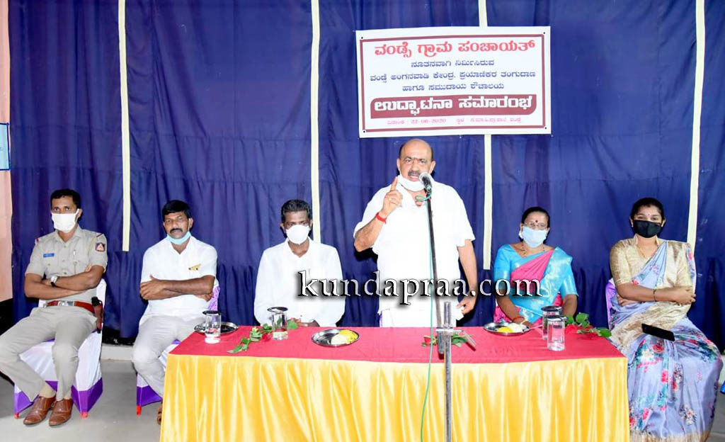 ವಂಡ್ಸೆಯಲ್ಲಿ ನೂತನವಾಗಿ ನಿರ್ಮಿಸಲಾದ ಅಂಗನವಾಡಿ ಕಟ್ಟಡ, ಸರಕಾರಿ ಕಛೇರಿಗಳ ಸಂಕೀರ್ಣದಲ್ಲಿ ನಿರ್ಮಿಸಲಾದ ಸಮುದಾಯ ಶೌಚಾಲಯ, ಪ್ರಯಾಣಿಕರ ತಂಗುದಾಣವನ್ನು ಉದ್ಘಾಟಿಸಿ ಮಾತನಾಡಿದರು. ವಂಡ್ಸೆ ಗ್ರಾಮ ಪಂಚಾಯತ್ ಉದಯ ಕುಮಾರ್ ಶೆಟ್ಟಿ ಅವರ ನೇತೃತ್ವದಲ್ಲಿ ಸಾಕಷ್ಟು ಅಭಿವೃದ್ದಿ ಕಾರ್ಯಗಳು ಆಗಿವೆ. ಸಂಕುಚಿತ ಮನೋಭಾವ ಬಿಟ್ಟು ಅಭಿವೃದ್ದಿಯನ್ನು ಗುರುತಿಸಬೇಕು. ಶೈಕ್ಷಣಿಕವಾಗಿ ವಂಡ್ಸೆ ಇನ್ನೂ ಬೆಳೆಯಬೇಕು ಎಂದರು.