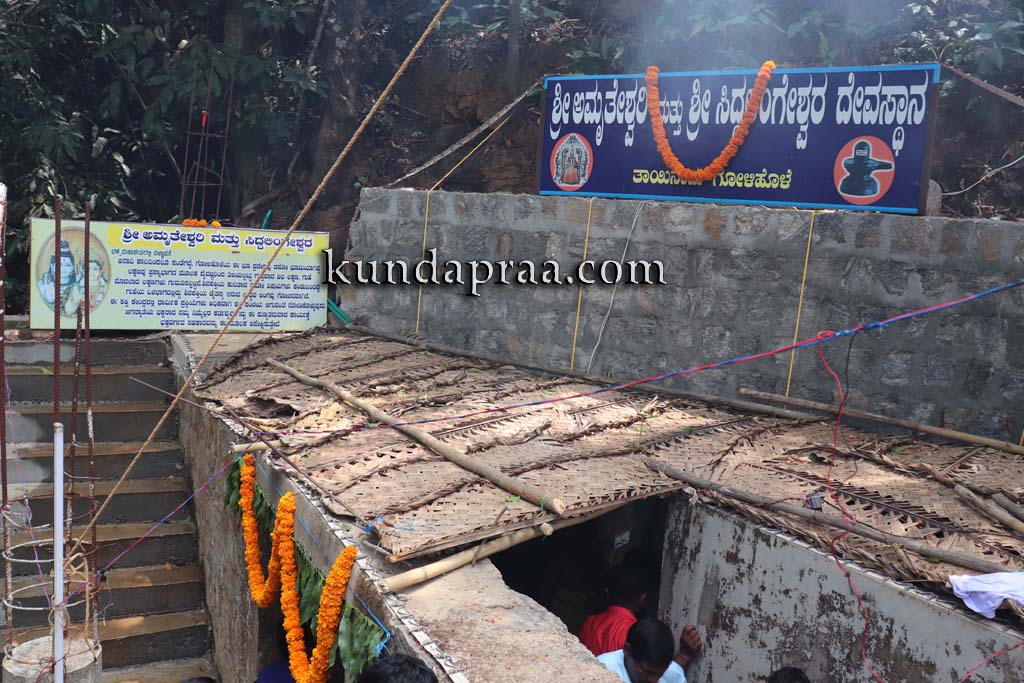 ಬೈಂದೂರು: ತಾಲೂಕಿನ ಗೋಳಿಹೊಳೆ ಗ್ರಾಮದ ತಾಯ್ನಾಡು ಎಂಬಲ್ಲಿ ಕಾನನದ ನಡುವೆ ಕಿರು ನದಿಯ ತಟದಲ್ಲಿನ ಗುಹೆಯೊಳಕ್ಕೆ ನೆಲೆನಿಂತಿರುವ ಶ್ರೀ ಅಮೃತೇಶ್ವರಿ ಹಾಗೂ ಶ್ರೀ ಸಿದ್ದಲಿಂಗೇಶ್ವರ ಸನ್ನಿಧಿಯಲ್ಲಿ ಶಿವರಾತ್ರಿಯ ಸಂಭ್ರಮ ಮನೆಮಾಡಿತ್ತು. ಸಿದ್ಧಿ ಪುರುಷರು ಆರಾಧಿಸಲ್ಪಟ್ಟ ತಪೋಭೂಮಿ ಎಂಬ ಐತಿಹ್ಯವುಳ್ಳ ಕ್ಷೇತ್ರವು ಇತ್ತಿಚಿನ ದಿನಗಳಲ್ಲಿ ಪ್ರಸಿದ್ದಿಗೆ ಬರುತ್ತಿದ್ದು, ಶಿವರಾತ್ರಿಯಂದು ಸುತ್ತಲಿನ ಊರುಗಳ ಜನರು ದೇವರ ದರ್ಶನ ಪಡೆದು ಪುನೀತರಾಗುತ್ತಾರೆ.