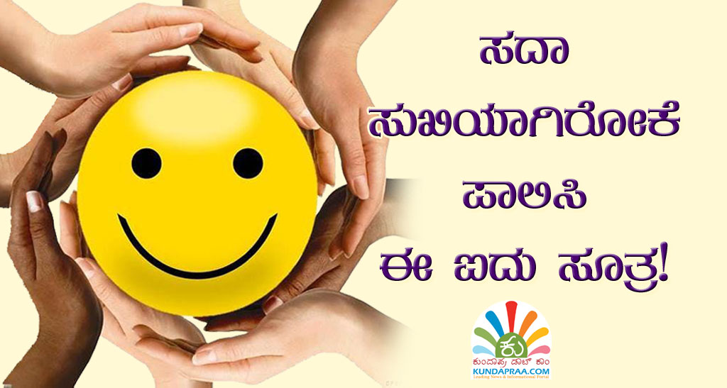 ಬದುಕಿನಲ್ಲಿ ಪ್ರತಿಯೊಬ್ಬರು ಸುಖಿಯಾಗಿರಲು ಬಯಸುತ್ತಾರೆ. ಆದರೆ ಒಂದಿಲ್ಲೊಂದು ಕಾರಣದಿಂದ ಅವರು ತಮ್ಮ ಬದುಕಿನ ಸಂತೋಷದ ಕ್ಷಣಗಳನ್ನು ಮಿಸ್ ಮಾಡಿಕೊಳ್ಳುತ್ತಲೇ ಇರುತ್ತಾರೆ. ಹಾಗೆ ಮಿಸ್ ಮಾಡಿಕೊಳ್ಳಬಾರದ ಈ ಐದು ಅಂಶಗಳು ನಿಮ್ಮ ಸುಖಿ ಜೀವನದ ಕೀಲಿಕೈ ಆಗಲಿದೆ.