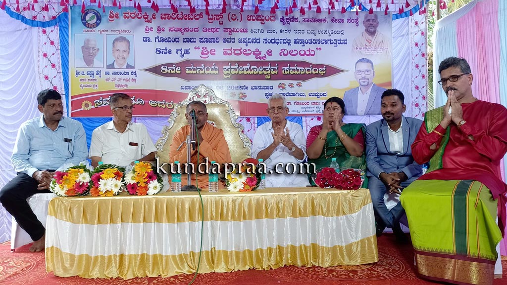ಉಪ್ಪುಂದದ ಇಂದಿರಾ ಗಾಣಿಗ ಇವರಿಗೆ ಇಲ್ಲಿನ ಶ್ರೀ ವರಲಕ್ಷ್ಮೀ ಚಾರಿಟೇಬಲ್ ಟ್ರಸ್ಟ್ ವತಿಯಿಂದ ನಿರ್ಮಿಸಿದ ನೂತನ ಗೃಹದ ಕೀಲಿಕೈಯನ್ನು ಫಲಾನುಭವಿಗೆ ಹಸ್ತಾಂತರಿಸಿ ಮಾತನಾಡಿದರು. ಸತ್ಪಾತ್ರರಿಗೆ ಮಾಡಿದ ದಾನ ಪರಿಪೂರ್ಣ ಎಂದೆನಿಕೊಳ್ಳುತ್ತದೆ. ಅದೇ ರೀತಿ ಟ್ರಸ್ಟಿನ ಅಧ್ಯಕ್ಷ, ಉದ್ಯಮಿ ಗೋವಿಂದ ಬಾಬು ಪೂಜಾರಿ ಇವರು ತನ್ನ ಸಂಪಾದನೆಯ ಒಂದು ಭಾಗವನ್ನು ಈ ಭಾಗದ ಬಡವರ ಅಭ್ಯುದಯಕ್ಕಾಗಿ ವಿನಿಯೋಗಿಸುತ್ತಿರುವುದು ದೇವರಿಗೂ ಪ್ರೀಯವಾದ ಕಾರ್ಯವಾಗಿದೆ. ಶೈಕ್ಷಣಿಕ, ಧಾರ್ಮಿಕ ಹಾಗೂ ಸಾಮಾಜಿಕ ಕಳಕಳಿ ಹೊಂದಿರುವ ಇವರು ತಮ್ಮ ಸತ್ಕಾರ್ಯಗಳ ಮೂಲಕ ಶ್ರೇಷ್ಠ ಮಾನವರಲ್ಲಿ ಒಬ್ಬರಾಗಿದ್ದಾರೆ ಎಂದರು.