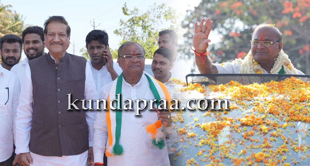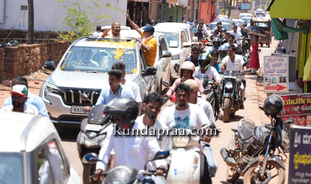 ಬೈಂದೂರು ಕಾಂಗ್ರೆಸ್ ಅಭ್ಯರ್ಥಿ ಕೆ. ಗೋಪಾಲ ಪೂಜಾರಿ ರೋಡ್ ಶೋ, ಮಹಾರಾಷ್ಟ್ರ ಮಾಜಿ ಸಿಎಂ ಚೌಹಾಣ್ ಸಾಥ್