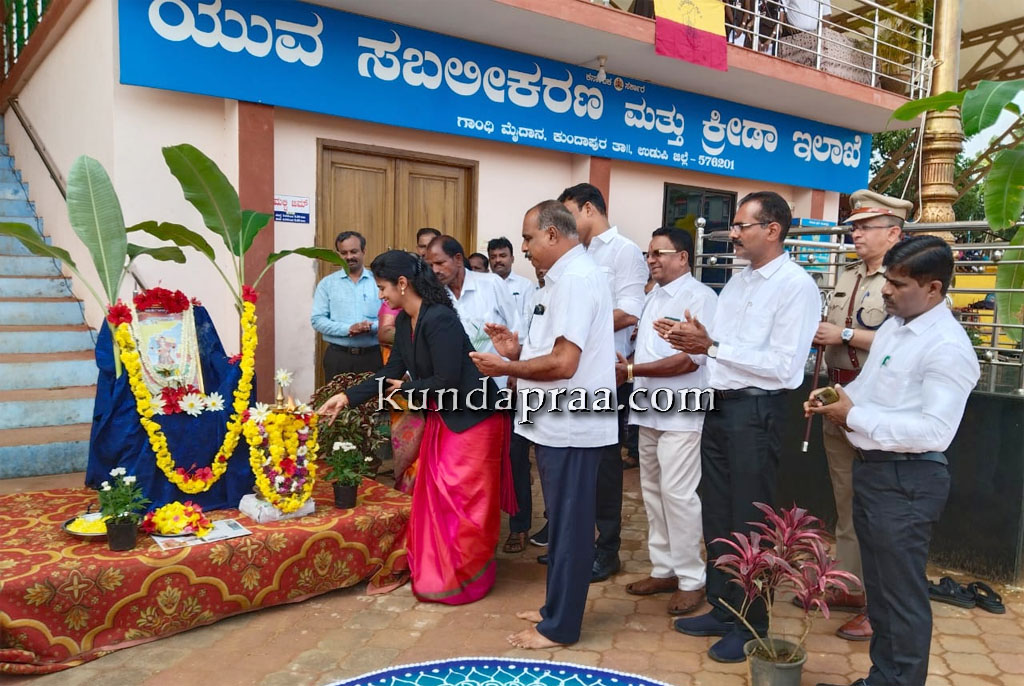 ಕುಂದಾಪುರ ವಿಧಾನಸಭಾ ಕ್ಷೇತ್ರದ ಶಾಸಕ ಕಿರಣ್ ಕುಮಾರ್ ಕೊಡ್ಗಿ ಭಾರತಾಂಭೆಯ ಭಾವಚಿತ್ರಕ್ಕೆ ಪುಷ್ಪಾರ್ಚನೆ ಸಲ್ಲಿಸಿದರು.