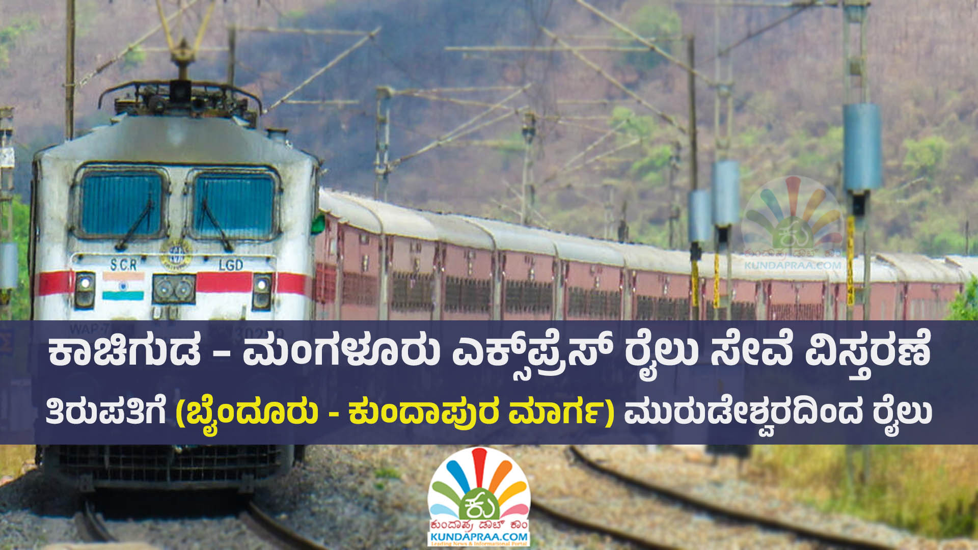 ವಾರದಲ್ಲಿ 2 ದಿನ ಸಂಚರಿಸುವ ಕಾಚಿಗುಡ – ಮಂಗಳೂರು ಸೆಂಟ್ರಲ್ ಎಕ್ಸ್ಪ್ರೆಸ್ ರೈಲು ಮಂಗಳವಾರ ಮತ್ತು ಶುಕ್ರವಾರ ಬೆಳಿಗ್ಗೆ 6-05ಕ್ಕೆ ಹೈದರಾಬಾದಿನ ಕಾಚಿಗುಡದಿಂದ ಹೊರಟು ತಿರುಪತಿಯ ರೇಣಿಗುಂಟ ನಿಲ್ದಾಣಕ್ಕೆ ಸಂಜೆ 4-45ಕ್ಕೆ ತಲುಪಿ ಅಲ್ಲಿಂದ ಮಂಗಳೂರು ಸೆಂಟ್ರಲ್ ನಿಲ್ದಾಣಕ್ಕೆ ಬುಧವಾರ ಮತ್ತು ಗುರುವಾರ ಬೆಳಿಗ್ಗೆ 9-30ಕ್ಕೆ ತಲುಪುತ್ತಿತ್ತು. ಮಂಗಳೂರು ಸೆಂಟ್ರಲ್ ನಿಲ್ದಾಣದಿಂದ ರಾತ್ರಿ 8-05ಕ್ಕೆ ಹೊರಟು ಮರುದಿನ ಬೆಳಿಗ್ಗೆ 11-45ಕ್ಕೆ ತಿರುಪತಿಯ ರೇಣಿಗುಂಟ ನಿಲ್ದಾಣ ತಲುಪುತ್ತಿತ್ತು. ಇದೀಗ ಕಾಚಿಗುಡ – ಮಂಗಳೂರು ಸೆಂಟ್ರಲ್ ರೈಲನ್ನು (12789 / 12790) ಮುರುಡೇಶ್ವರ ತನಕ ವಿಸ್ತರಣೆ ಮಾಡುವ ಸಂಸದರ ಕೋರಿಕೆಯನ್ನು ಮನ್ನಿಸಿ ಭಾರತೀಯ ರೈಲ್ವೆ ವಿಸ್ತರಣೆಗೆ ಆದೇಶ ಮಾಡಿದೆ.