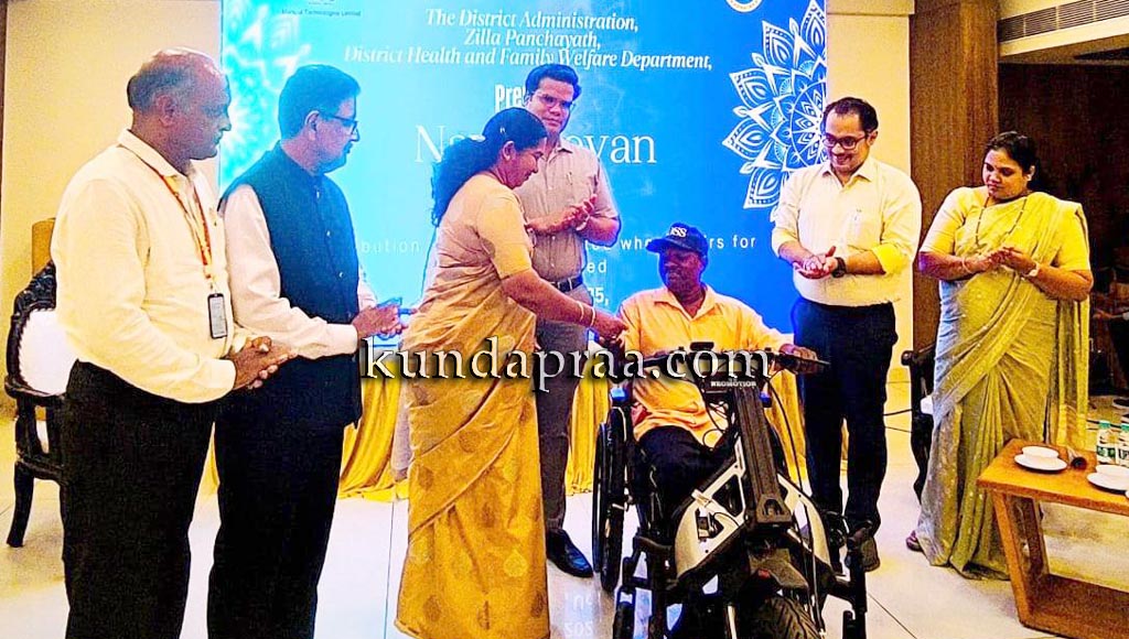 ಅವರು ಅಂದು ನಗರದ ಹೋಟೆಲ್ ಚಿತಾರ ಇಲ್ಲಿ ಮಣಿಪಾಲ್ ಟೆಕ್ನಾಲಜೀಸ್ ಲಿಮಿಟೆಡ್, ಜಿಲ್ಲಾಡಳಿತ, ಜಿಲ್ಲಾ ಪಂಚಾಯತ್ ಹಾಗೂ ಜಿಲ್ಲಾ ಆರೋಗ್ಯ ಮತ್ತು ಕುಟುಂಬ ಕಲ್ಯಾಣ ಇಲಾಖೆ ಉಡುಪಿ ಇವರ ಸಹಯೋಗದಲ್ಲಿ ನವ ಜೀವನ – ವಿಶೇಷಚೇತನರಿಗೆ ಬ್ಯಾಟರಿ ಚಾಲಿತ ಗಾಲಿ ಕುರ್ಚಿಗಳ ವಿತರಣಾ ಕಾರ್ಯಕ್ರಮದಲ್ಲಿ ಭಾಗವಹಿಸಿ, ಮಾತನಾಡಿದರು.