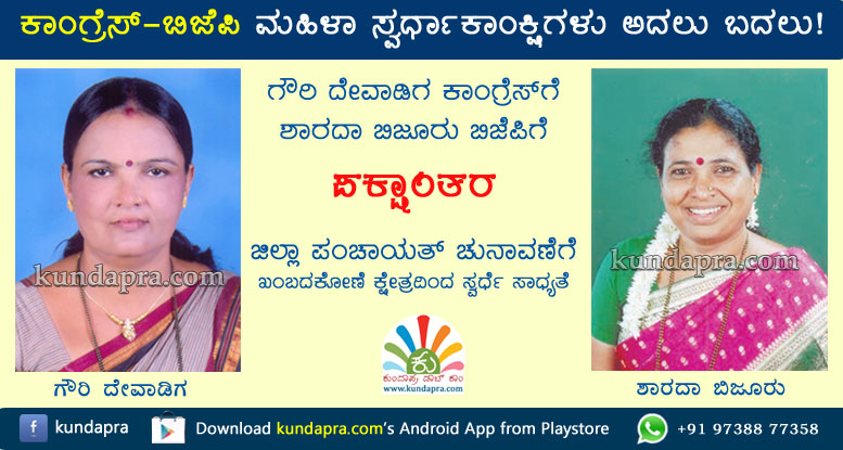 ಇತ್ತ ಕಾಂಗ್ರೆಸ್ ಪಕ್ಷದಲ್ಲಿ ಸಕ್ರೀಯವಾಗಿ ಗುರುತಿಸಿಕೊಂಡಿದ್ದ, ಮಾಜಿ ಜಿಲ್ಲಾ ಪಂಚಾಯತ್ ಉಪಾಧ್ಯಕ್ಷೆ ಶಾರದಾ ಬಿಜೂರು ಕಾಂಗ್ರೆಸ್ ಪಕ್ಷ ತೊರೆದು ಬಿಜೆಪಿಗೆ ಅಧಿಕೃತವಾಗಿ ಸೇರ್ಪಡೆಗೊಂಡಿದ್ದಾರೆ. ಈ ಭಾರಿ ಶಾರದಾ ಬಿಜೂರು ಅವರ ಬದಲಿಗೆ ಅವರ ಮಗಳನ್ನು ಖಂಬದಕೋಣೆ ಕ್ಷೇತ್ರದಿಂದ ಕಣಕ್ಕಿಳಿಸುವ ತಯಾರಿಯಲ್ಲಿದ್ದಾರೆ. ಒಟ್ಟಿನಲ್ಲಿ ಮಹಿಳಾ ಮೀಸಲಾತಿ ಇದ್ದ ಖಂಬದಕೋಣೆ ಕ್ಷೇತ್ರದಲ್ಲಿ ಈ ಭಾರಿ ಮಹಿಳೆಯರ ನಡುವೆ ನೇರ ಜಿದ್ದಾಜಿದ್ದಿ ಏರ್ಪಡಲಿದ್ದು ಯಾರು ಗೆಲುವು ಸಾಧಿಸಲಿದ್ದಾರೆ ಎಂಬುದು ಸದ್ಯದ ಕುತೂಹಲ.