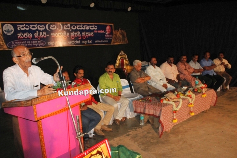 ಇಲ್ಲಿನ ಶಾರದಾ ವೇದಿಕೆಯಲ್ಲಿ ಸುರಭಿ ರಿ. ಬೈಂದೂರು ಇದರ 16ನೇ ವರ್ಷದ ಸಂಭ್ರಮ ’ಸುರಭಿ ಜೈಸಿರಿ’ಯಲ್ಲಿ ಬಿಂದುಶ್ರೀ ಪ್ರಶಸ್ತಿ ಸ್ವೀಕರಿಸಿದ ಅವರು ಮಾತನಾಡಿ ಅನಾದಿ ಕಾದಿಂದಲೂ ಬಂದ ಈ ಸಾಂಸ್ಕೃತಿಕ ಪರಂಪರೆಯನ್ನು, ಸಂಸ್ಕೃತಿಯ ಮೂರ್ತರೂಪವಾದ ಕಲೆ ಸಾಹಿತ್ಯ ಸಂಗೀತ ಮುಂತಾದವುಗಳ ಮೂಲಕ ಉಳಿಸಿಕೊಳ್ಳುವುದು ನಮ್ಮ ಮುಂದಿನ ಸವಾಲು. ಆ ಕೆಲಸವನ್ನು ಮಾಧ್ಯಮಗಳೋ, ಸಾಂಸ್ಕೃತಿಕ ಚಿಂತಕರೋ ಮಾಡುತ್ತಾರೆಂಬ ಭ್ರಮೆ ಬೇಡ. ಕಲಾ ಸಂಸ್ಥೆಗಳಲ್ಲಿ ಇಂತಹ ಚಿಂತನೆ ಮೊಳೆತು ಸಂಸ್ಕೃತಿಯ ಉಳಿವಿನ ಕೆಲಸ ಸುಗಮವಾಗಲಿ ಎಂದು ಆಶಿಸಿದರು.