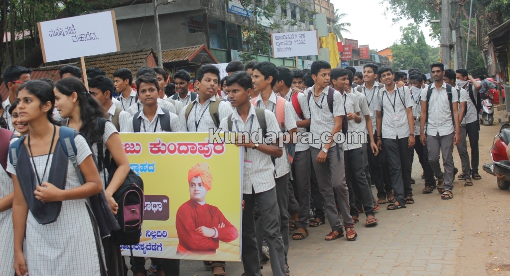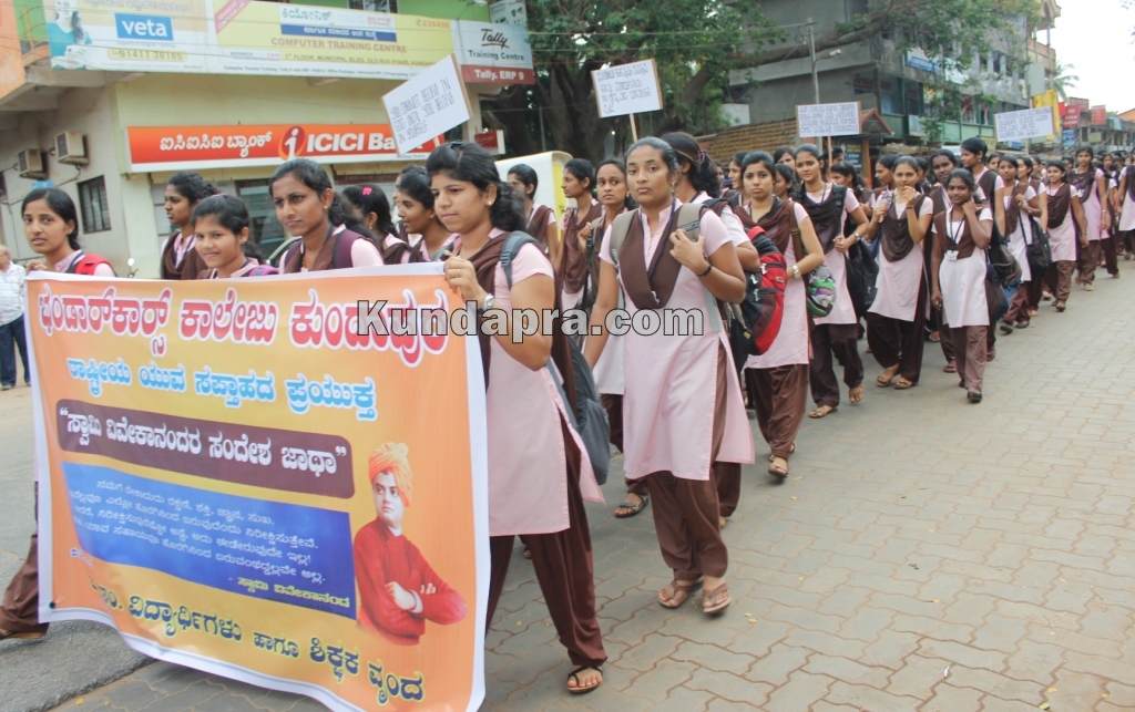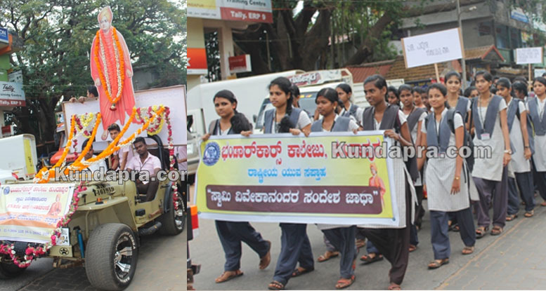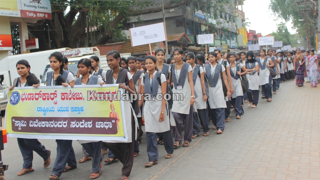 ಕುಂದಾಪುರ: ಭಂಡಾರ್ಕಾರ್ಸ್ ಕಾಲೇಜು ವಿದ್ಯಾರ್ಥಿಗಳಿಂದ ವಿವೇಕಾನಂದರ ಸಂದೇಶ ಜಾಥಾ