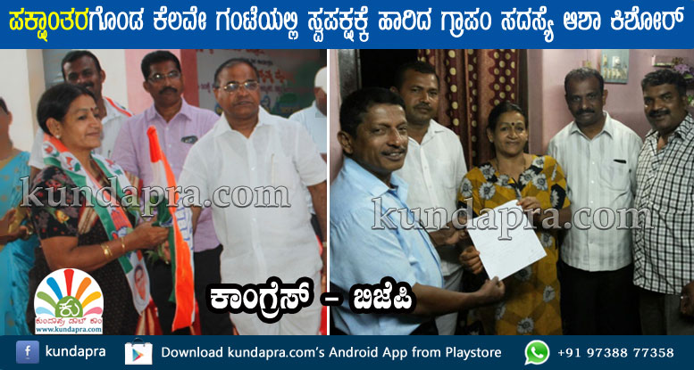ಬೈಂದೂರು: ಅದು ಕಾಂಗ್ರೆಸ್ ಕಾರ್ಯಕರ್ತರ ಸಭೆ. ಸಭೆ ಆರಂಭಕ್ಕೂ ಮೊದಲೇ ಸ್ವಇಚ್ಛೆಯಿಂದ ಅಲ್ಲಿಗೆ ಯಡ್ತರೆ ಗ್ರಾಪಂ ಸದಸ್ಯೆ ಆಶಾ ಕಿಶೋರ್ ಬಂದಿದ್ದರು. ನೆರದಿದ್ದ ಸಭಿಕರಿಗೂ ಇವರ ಆಗಮನ ಆಶ್ಚರ್ಯ ತಂದಿತ್ತು. ಸಭೆ ಆರಂಭಗೊಳ್ಳುತ್ತಿದ್ದಂತೆ ಅವರ ಬಂದ ಕಾರಣವೂ ತಿಳಿದು ಹೋಯಿತು. ಬಿಜೆಪಿ ಪಕ್ಷ ತೊರೆದು ಕಾಂಗ್ರೆಸ್ ಸೇರುವ ಇರಾದೆ ತೋರಿರುವುದು ಸ್ಪಷ್ಟವಾಗಿತ್ತು. ಮೊದಲ ಸುತ್ತಿನ ಮಾತುಕತೆ ನಡೆದಿದ್ದರಿಂದ ಕಾಂಗ್ರೆಸ್ ನಾಯಕರುಗಳು ಮೊದಲಿಗೆ ವೇದಿಕೆಗೆ ಆಹ್ವಾನಿಸಿ ಅವರನ್ನು ಕುರಿಸಿ ಬಳಿಕ ಬೈಂದೂರು ಶಾಸಕ ಗೋಪಾಲ ಪೂಜಾರಿ ಅವರೇ ಕಾಂಗ್ರೆಸ್ ಶಾಲು ಹಾಕಿ, ಹೂ ನೀಡಿ ಪಕ್ಷಕ್ಕೆ ಬರಮಾಡಿಕೊಂಡಿದ್ದರು.