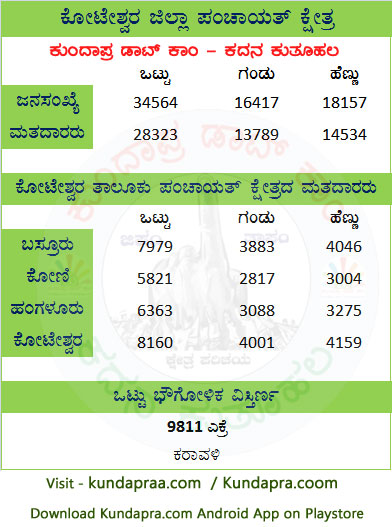 ಚುನಾವಣೆ ಕ್ಷೇತ್ರಗಳು: ಬಸ್ರೂರು, ಬಳ್ಕೂರು, ಹಂಗಳೂರು, ಆನಗಳ್ಳಿ, ಕೋಣಿ, ಕಂದಾವರ, ಕೋಟೇಶ್ವರ
