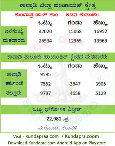 ಕಾವ್ರಾಡಿ ಕ್ಷೇತ್ರದಲ್ಲಿ ಕಾಂಗ್ರೆಸ್ ,ಬಿಜೆಪಿ ಹಾಗೂ ಸಿಪಿಎಂ ಪಕ್ಷದ ನಡುವೆ ತ್ರಿಕೋನ್ ಸ್ಪರ್ಧೆ ಏರ್ಪಟ್ಟಿದೆ. ಮಹಿಳಾ ಮೀಸಲಾತಿ ಇರುವ ಕ್ಷೇತ್ರದಲ್ಲಿ ಕಾಂಗ್ರೆಸ್ನಿಂದ ಜ್ಯೋತಿ ಎಂ. ಕಣದಲ್ಲಿದ್ದರೇ, ಬಿಜೆಪಿಯಿಂದ ಸುಶೀಲಾ ಹಾಗೂ ಸಿಪಿಎಂ ಪಕ್ಷದಿಂದ ಪೂರ್ಣಿಮಾ ಕಣದಲ್ಲಿದ್ದಾರೆ. ಸವಾಲಿನ ಕ್ಷೇತ್ರದಲ್ಲಿ ಮಹಿಳಾ ಮಣಿಯರು ಹೇಗೆ ಗೆದ್ದುಬರಲಿದ್ದಾರೆ ಎಂಬುದು ಕುತೂಹಲ.