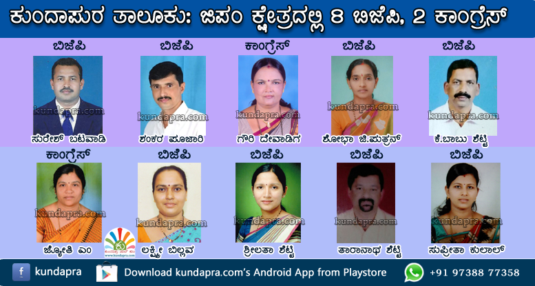 ಕುಂದಾಪುರ: ಜಿಲ್ಲಾ ಪಂಚಾಯತ್ ಚುನಾವಣೆಯಲ್ಲಿ ಕುಂದಾಪುರ ತಾಲೂಕಿನಲ್ಲಿ ಬಿಜೆಪಿ ಎಂಟು ಕ್ಷೇತ್ರಗಳಲ್ಲಿ ಜಯಗಳಿಸಿದ್ದರೇ, ಕಾಂಗ್ರೆಸ್ ಎರಡು ಸ್ಥಾನದಲ್ಲೂ ಜಯ ಸಾಧಿಸಿದೆ. ಕಂಬದಕೋಣೆ, ಕಾವ್ರಾಡಿ ಕಾಂಗ್ರೆಸ್ ಪಾಲಾದರೆ, ಶಿರೂರು, ಬೈಂದೂರು, ತ್ರಾಸಿ, ವಂಡ್ಸೆ, ಸಿದ್ದಾಪುರ, ಹಾಲಾಡಿ, ಕೋಟೇಶ್ವರ ಬೀಜಾಡಿಯಲ್ಲಿ ಬಿಜೆಪಿ ಅಭ್ಯರ್ಥಿಗಳು ಜಯಗಳಿಸಿದ್ದಾರೆ. ಕುಂದಾಪ್ರ ಡಾಟ್ ಕಾಂ ವರದಿ